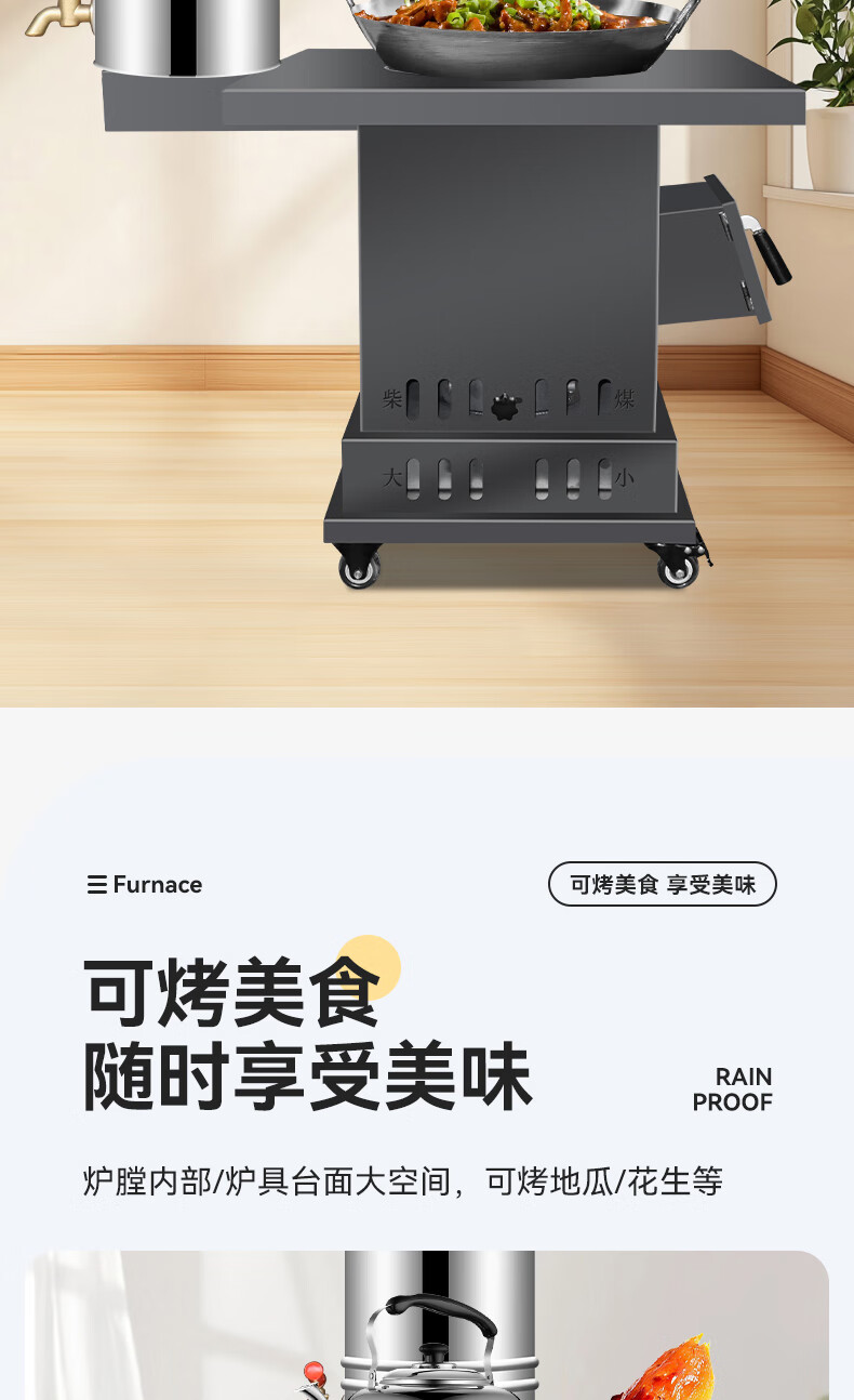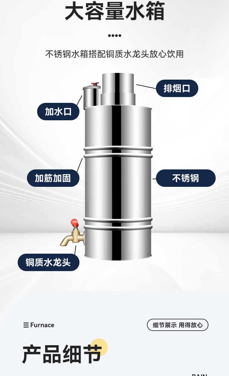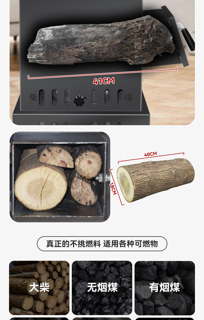 烽点柴火灶家用取暖炉烧木柴煤两用农村大锅台室内无烟移动加大柴火灶 小号炉+水箱+3米管配件