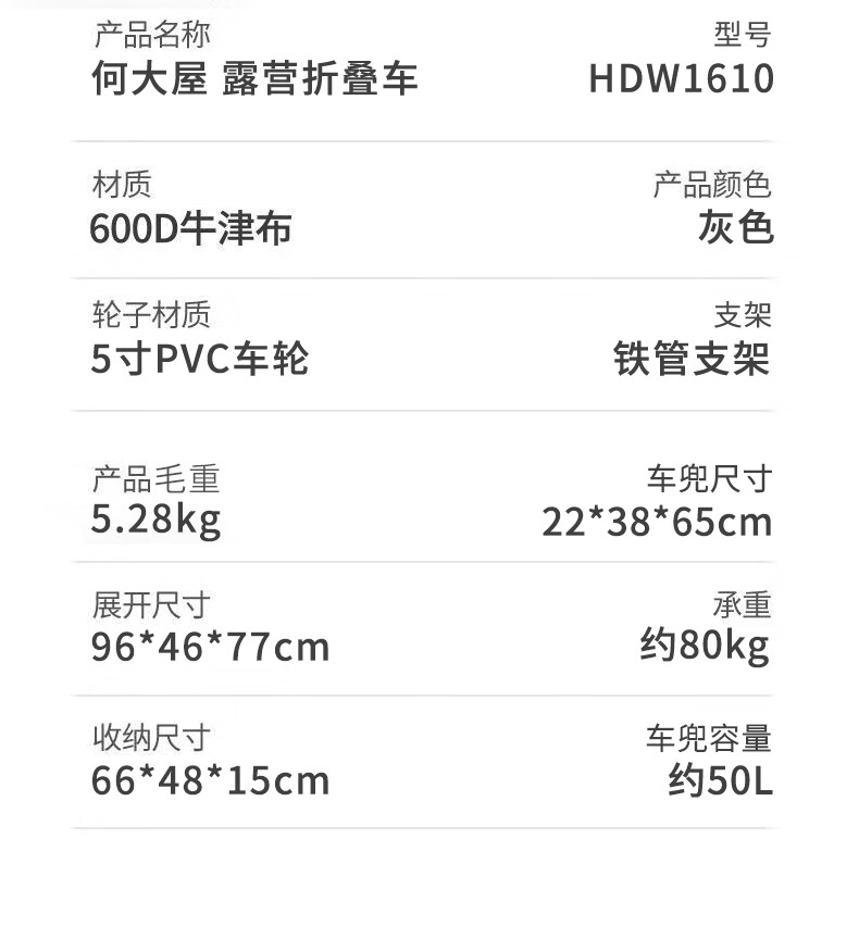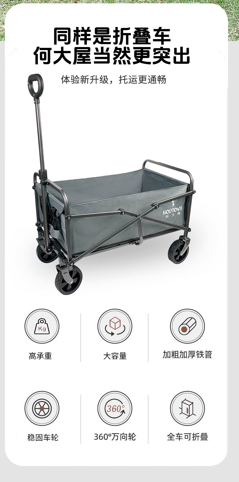 何大屋(Hodtown) 户外露营车折叠车野餐车营地车露营装备便捷购物旅游买菜 HDW1640 5寸桌板