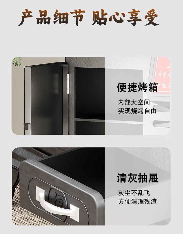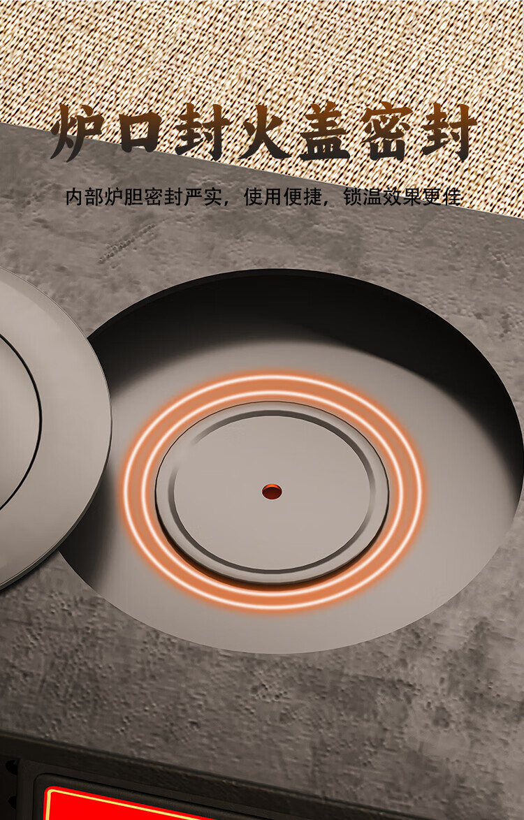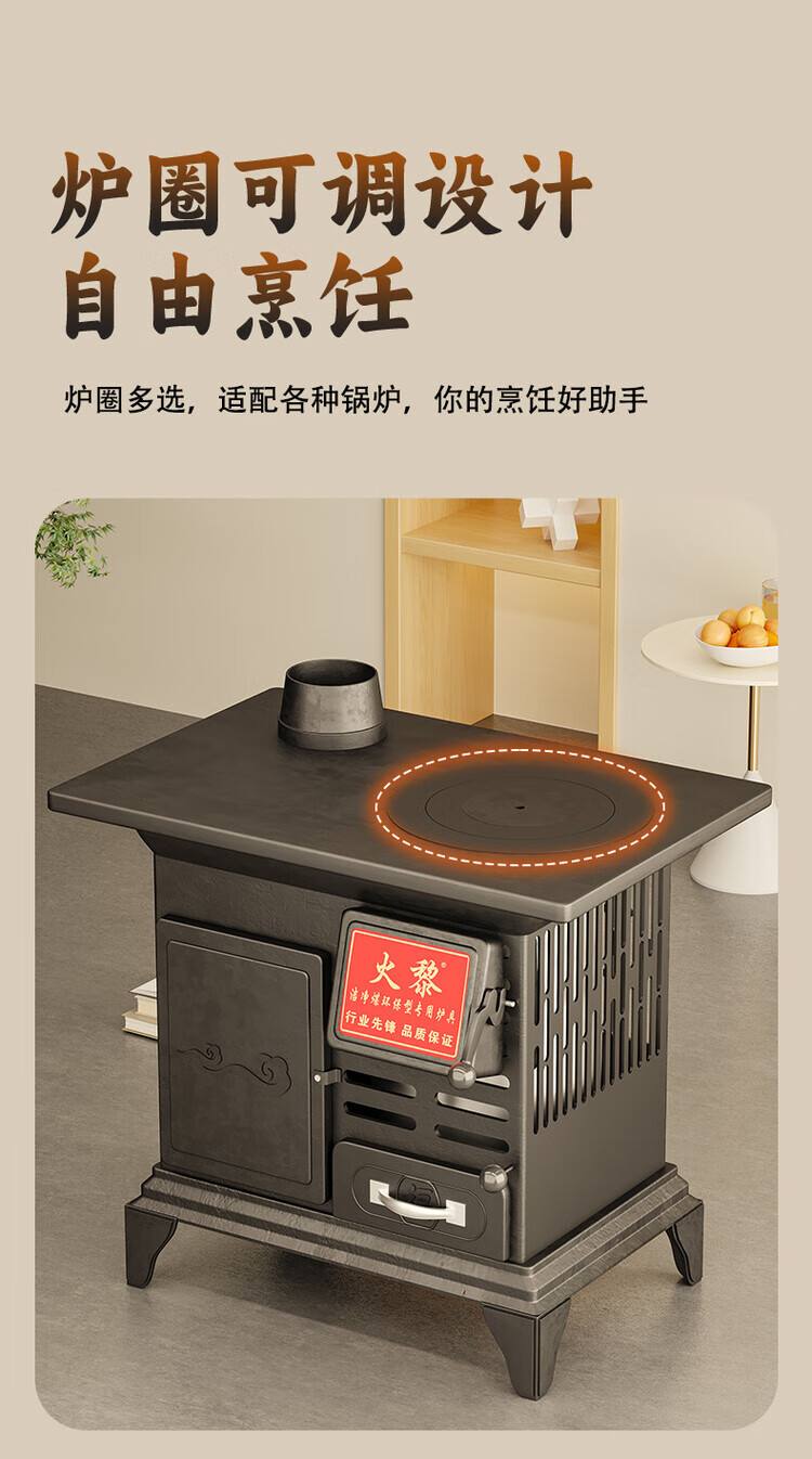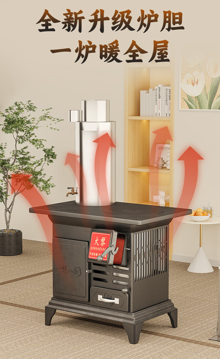 造型好看,着实实用,烧着后无烟尘,还带一烤箱,烤山芋,还能烤火,是一款农家适用