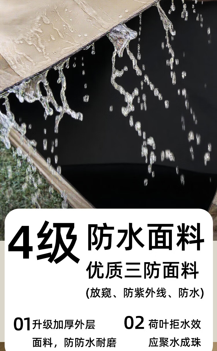 柏潮户外天幕便携加厚黑胶银胶野营野餐抗风防雨遮阳棚露营装备 卡其色 涂银款天幕防雨送全套工 方形长0.36*0.36米丨1人用
