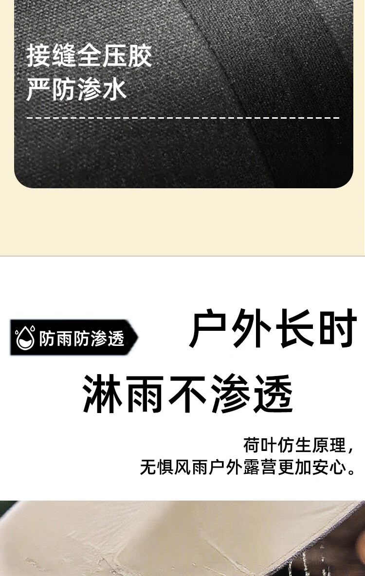 很喜欢这款帐篷,遮光效果特别好,隐私性很强。下雨天用了两次,防雨功能完全没问题,里面一点没湿。价格也不贵,挺划算的。收纳方便。