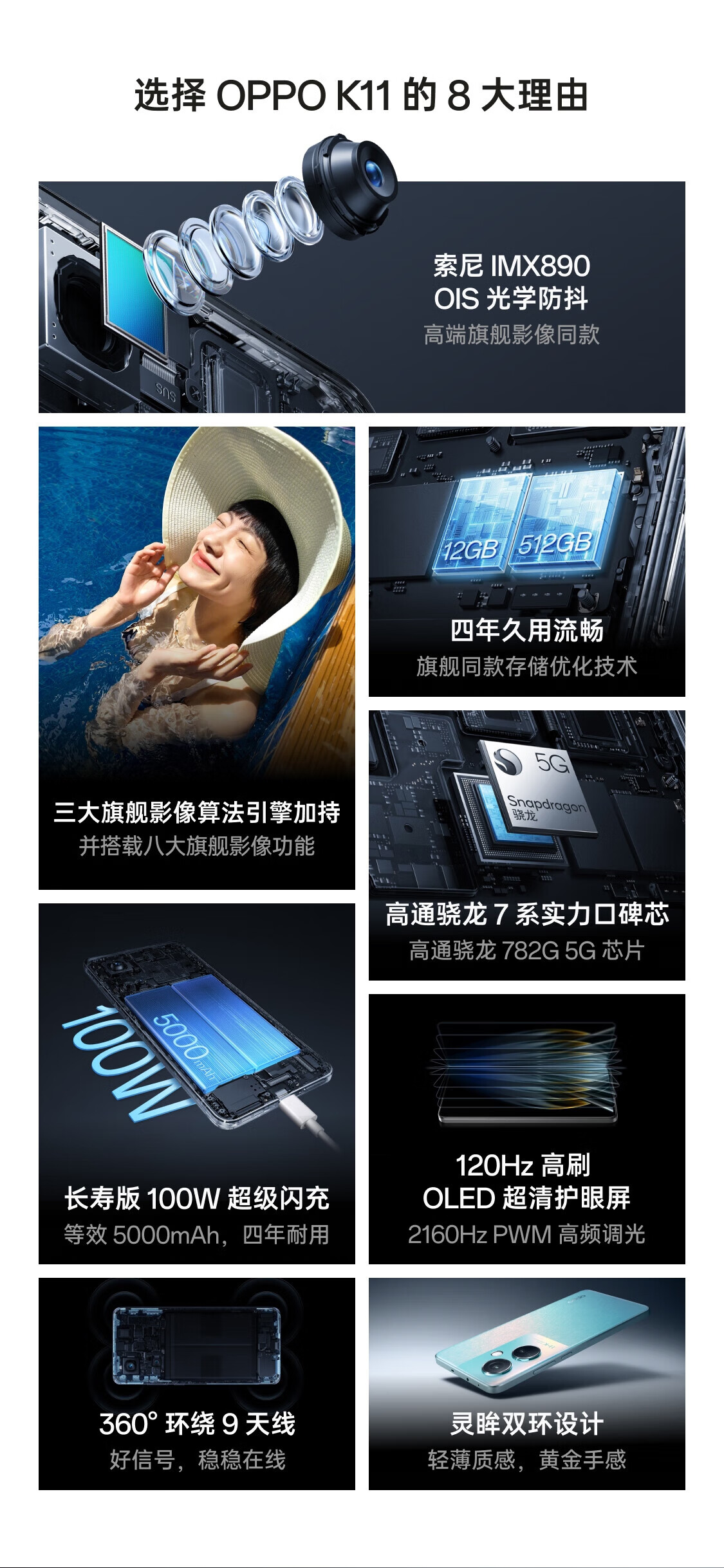OPPO K11高通骁龙782处理器5G芯片旗舰全网通100W超级闪充主摄 冰川蓝 中国大陆 12GB+512GB