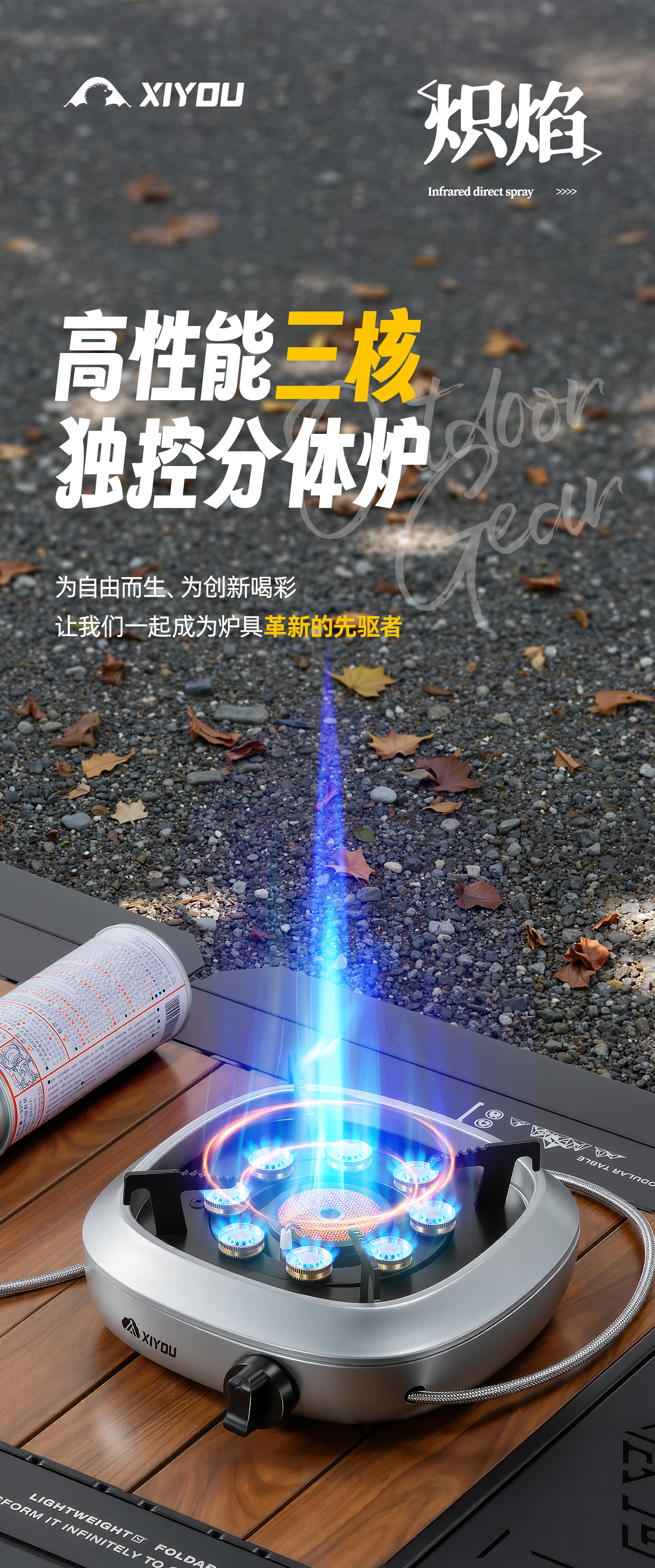 嘻由分体式卡式炉防爆2025新款猛火燃气灶户外煮茶露营野炊炉具卡磁炉 三核独控稳压炉【快银色】