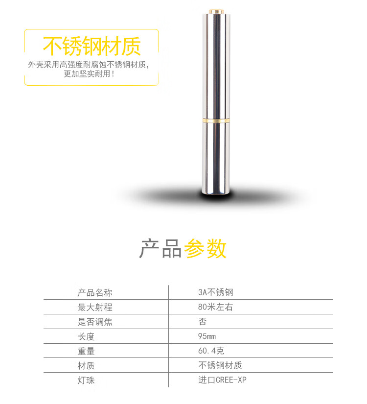 GUBPMTSHIM不锈钢小手电筒强光超亮远射可充电式迷你便携家用耐用小型照明灯 单档版_二电一充加长续航
