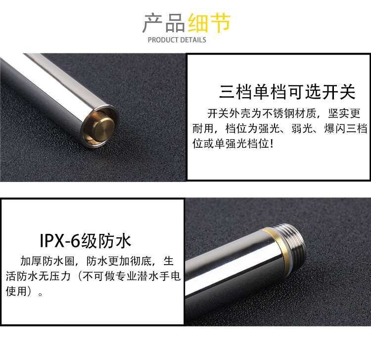 GUBPMTSHIM不锈钢小手电筒强光超亮远射可充电式迷你便携家用耐用小型照明灯 三档版_二电一充加长续航