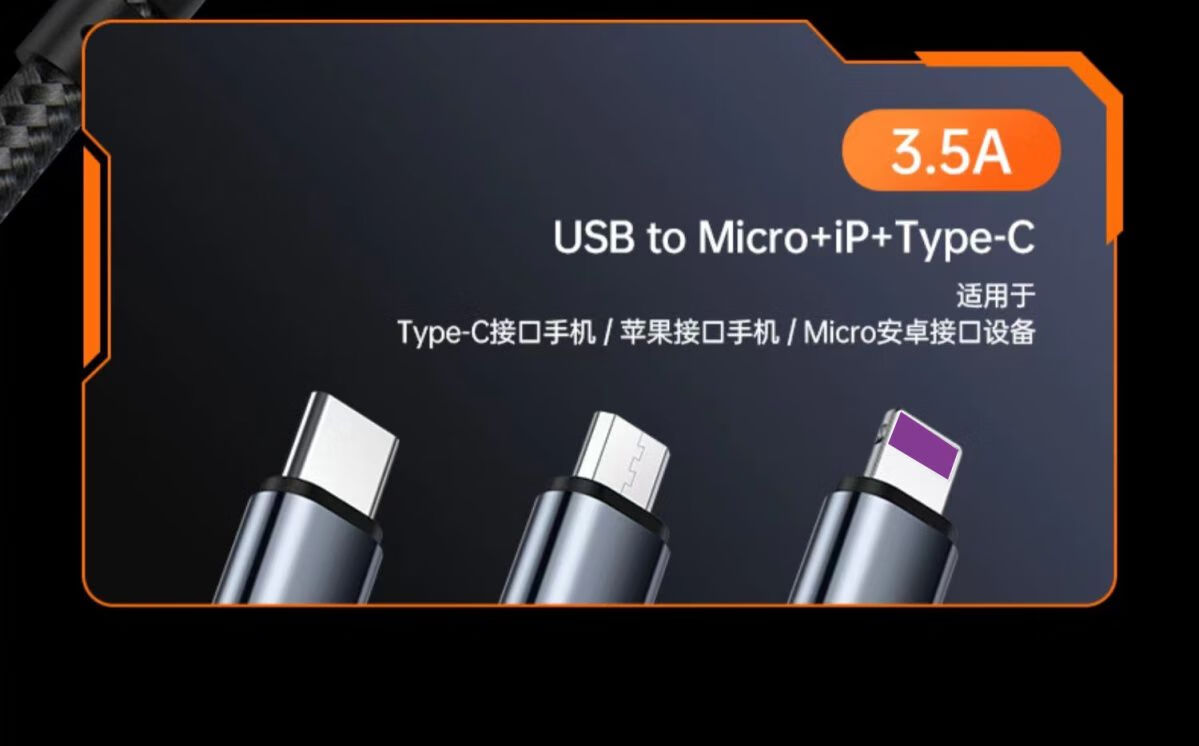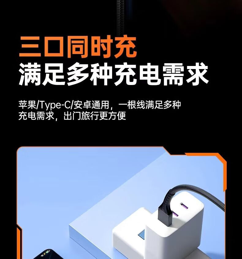 一拖三充电器,外观设计结实,材质是很棒的,价钱实惠便宜,质量做工精细,充电速度较快,实物美美哒,商家态度非常好,一线在手,可以解决几乎所有类型手机的充电问题。给予五星好评!