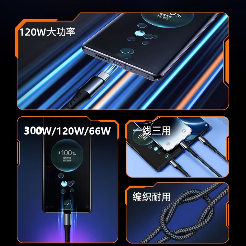 司选【120W超级快充】三合一数据线超级快充一拖三充电器线适用苹果华为小米OPPO安卓手机多功能车载 升级款套装【快充头+三合一线】兼容苹果15-17 1.2米加粗纯铜芯