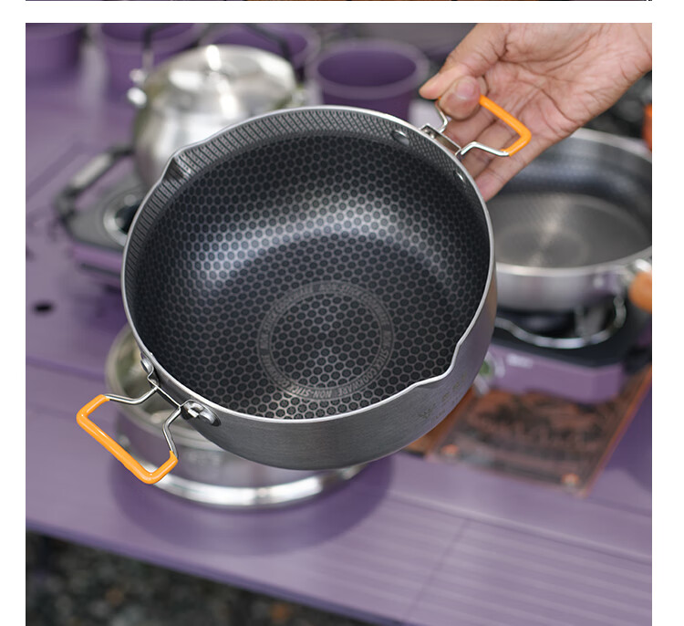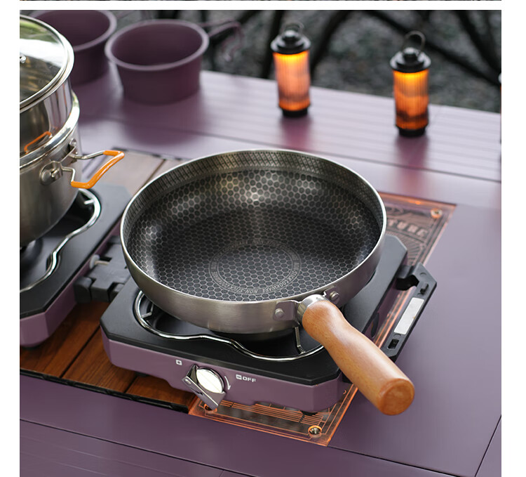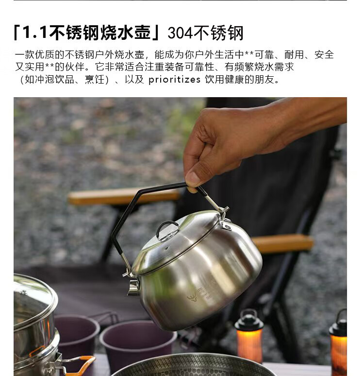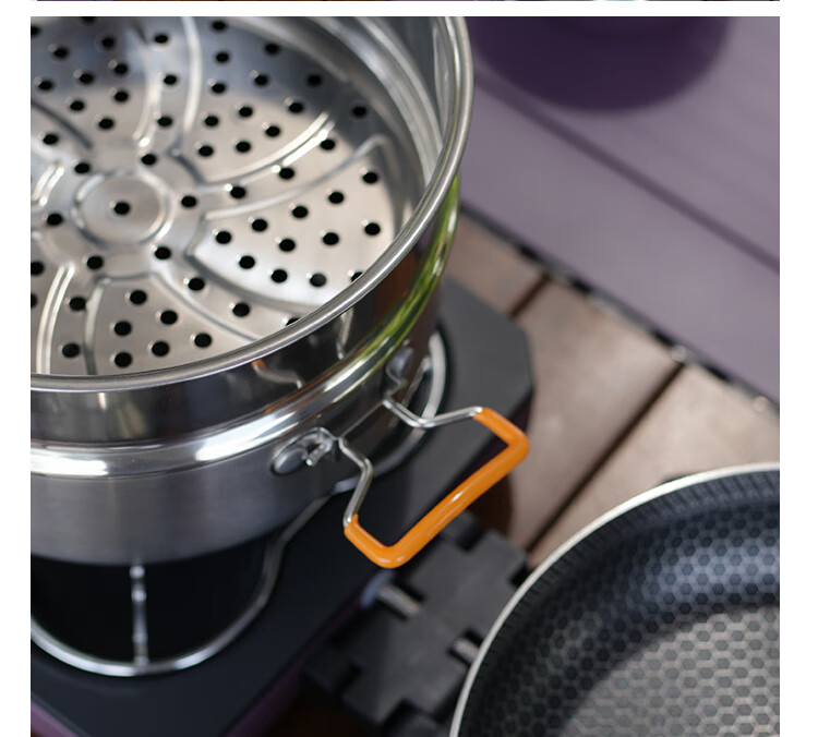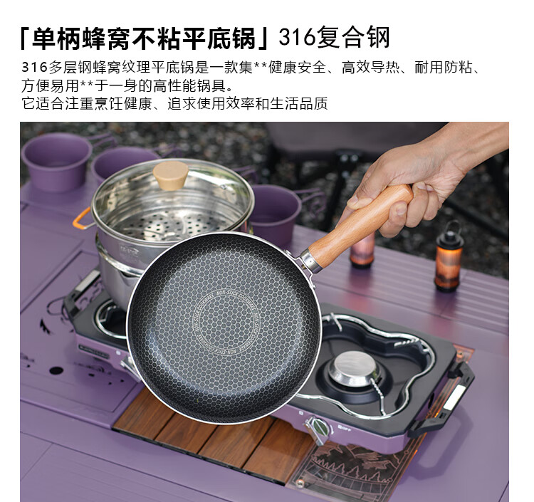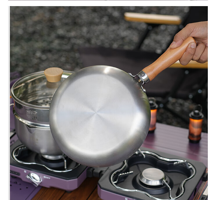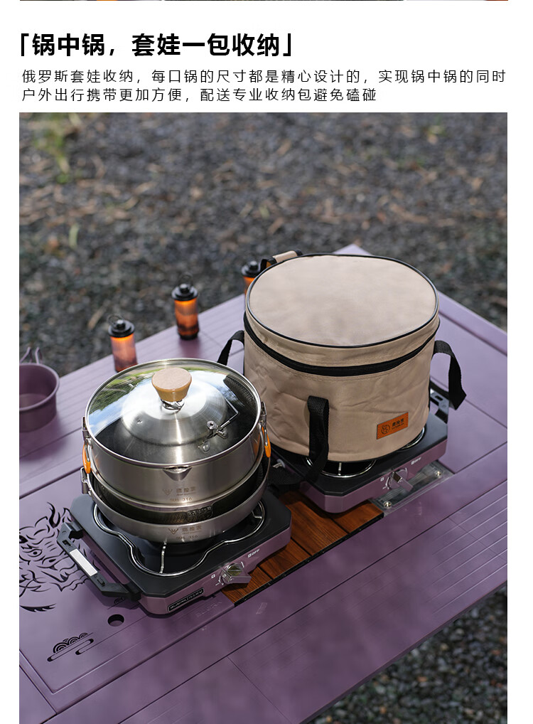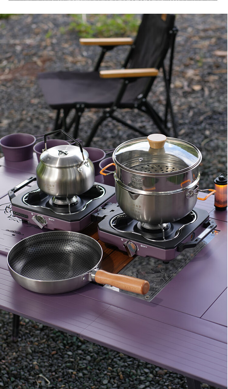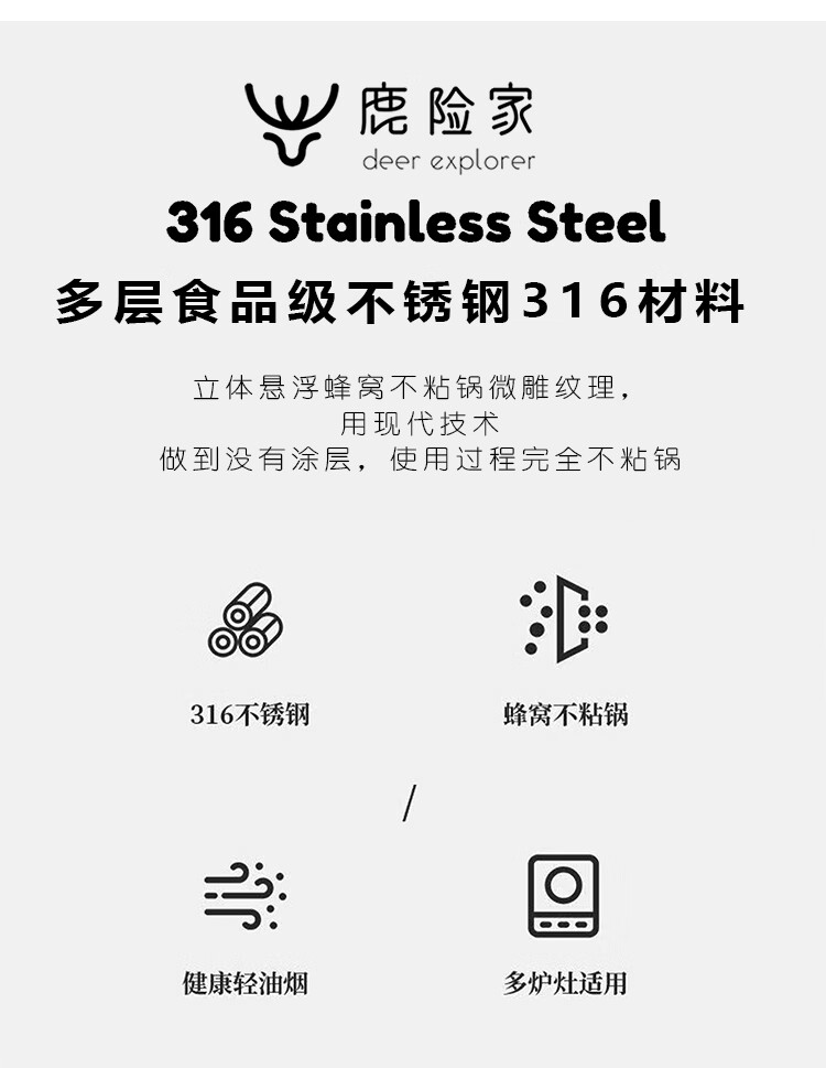 鹿险家户外露营锅具套装316不锈钢野营装备野餐用品 【锅具四件套】316煮锅+316煎锅+304水壶+304蒸屉