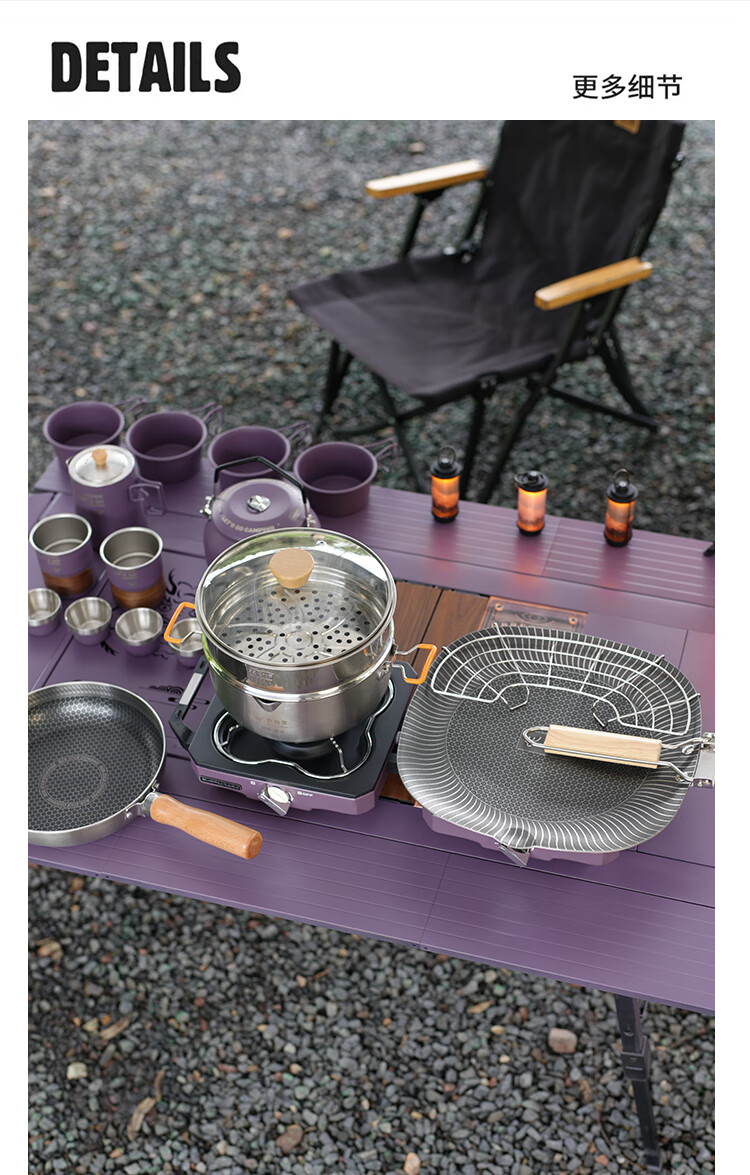 柯曼CAMPINGMOON6人不锈钢锅轻便16件套野餐锅户外煎炒煮炖电磁炉燃气灶通用 MC-210(6人套锅)