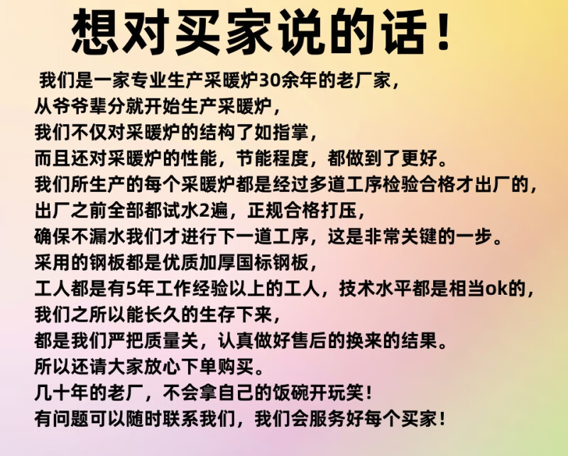 锅炉供暖非常好,价格实惠,真的是适合懒汉,加一次煤大半天都不用管,非常省事。卖家服务态度好,回答的特别仔细,有耐心,物流也很快