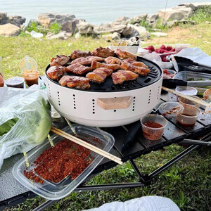 这款围炉很不错,嗯,能放很多炭火也很轻便,在家里就可以烤肉但是家里的烟有一点大,嗯质量不错很小巧我非常满意。下次还会购买。