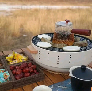 围炉煮茶烤火炉套装器具全套2025新款烧烤炉子家用烤肉室内户外 【围炉煮茶】白色围炉+烤网