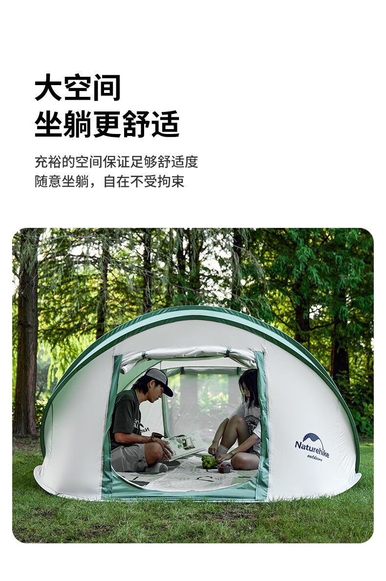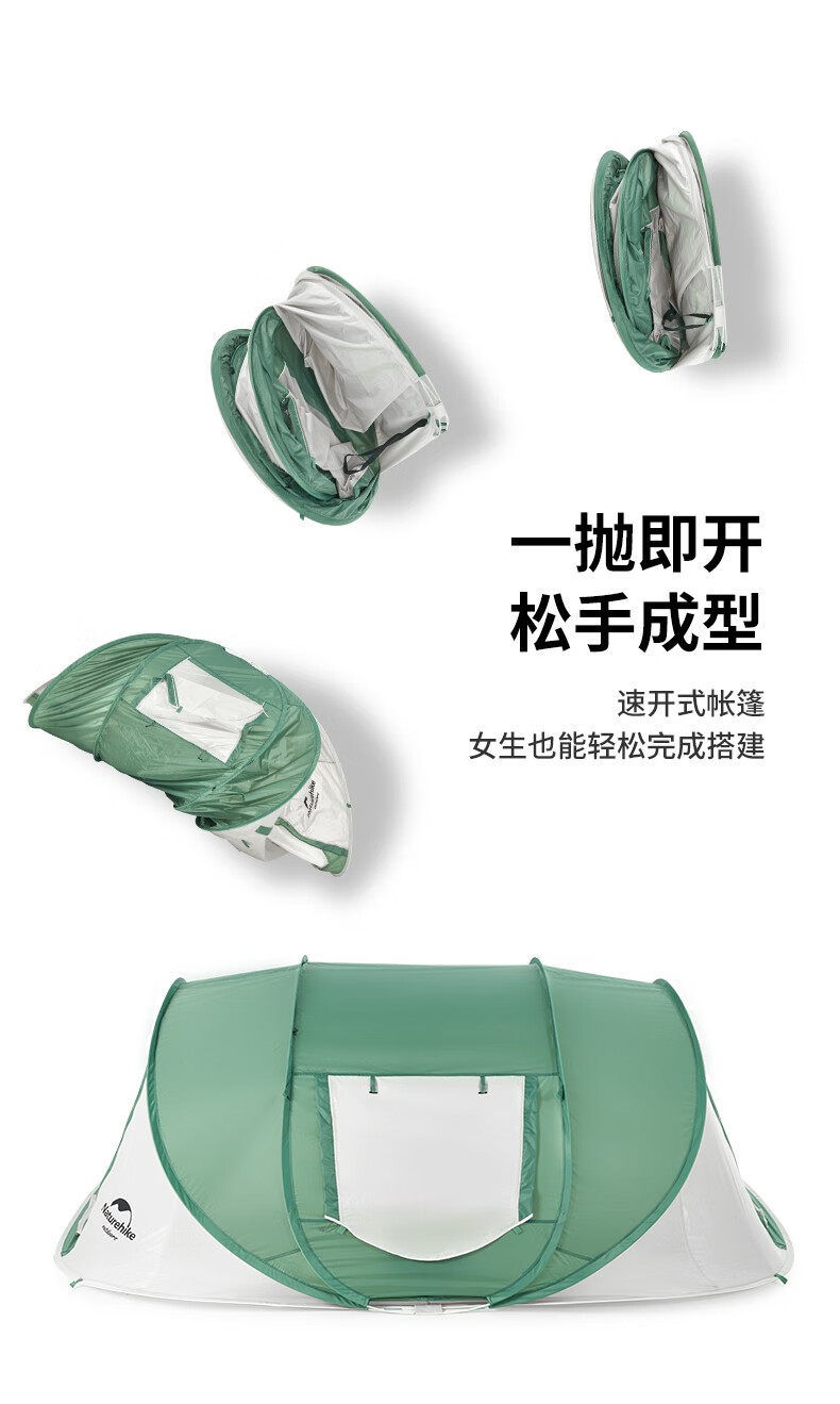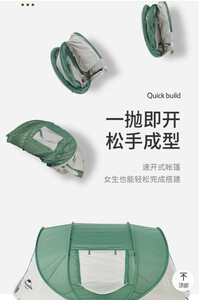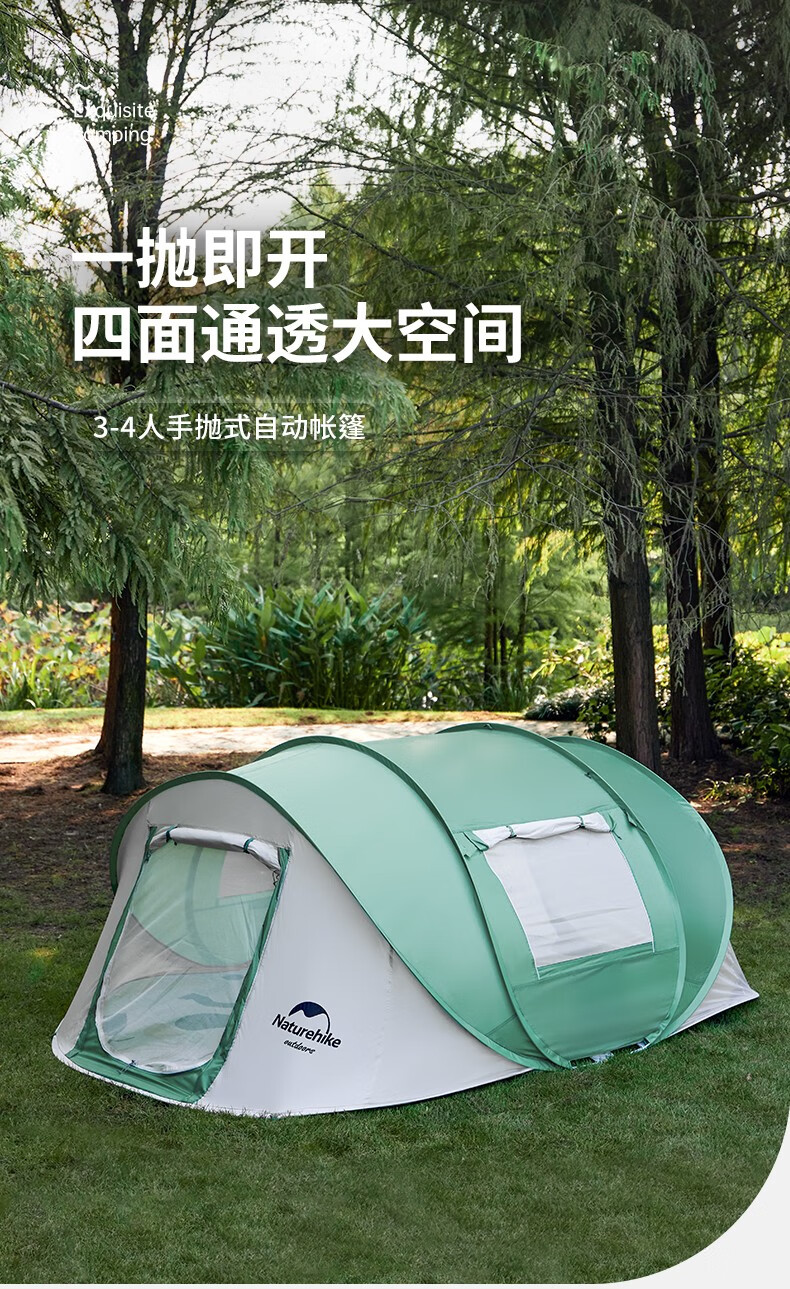 挪客手抛帐篷太适合户外小白!青绿色清新好看,3-4人容量够,一抛自动成型超省事。露营实测防风防雨都靠谱,面料也厚实,收起来体积不大好携带,全家露营必备! 容纳人数:一家4口完全没有。