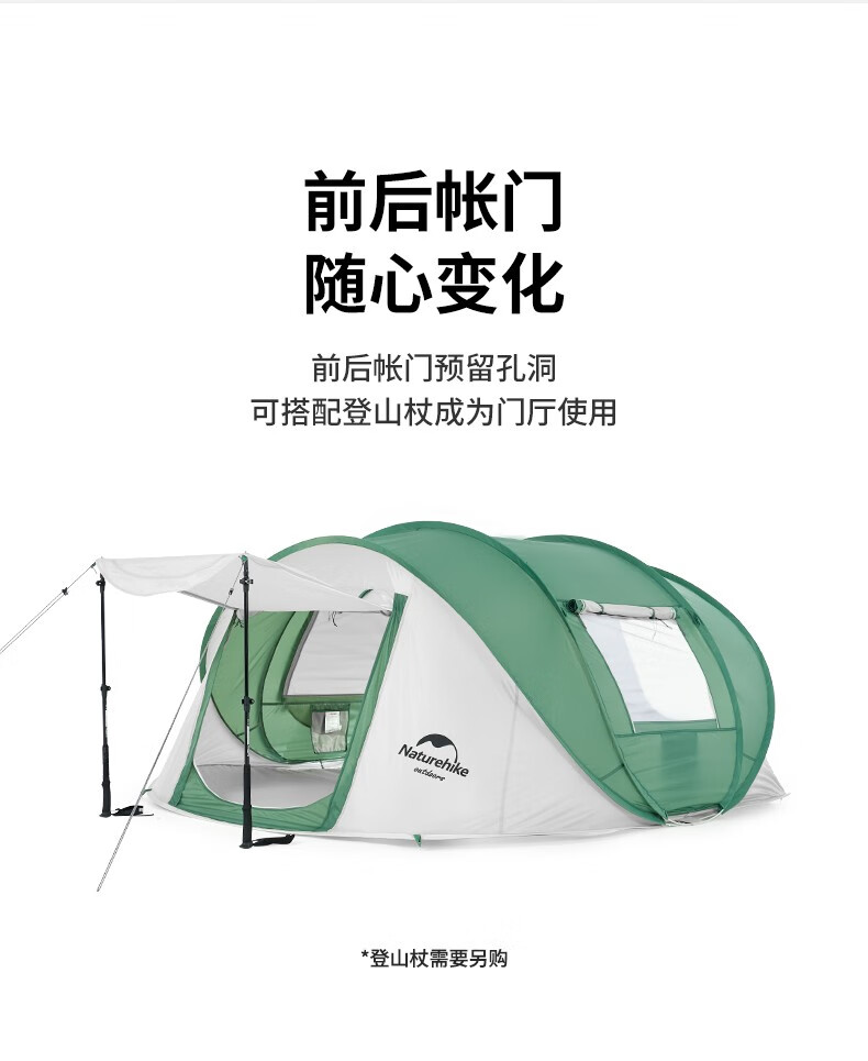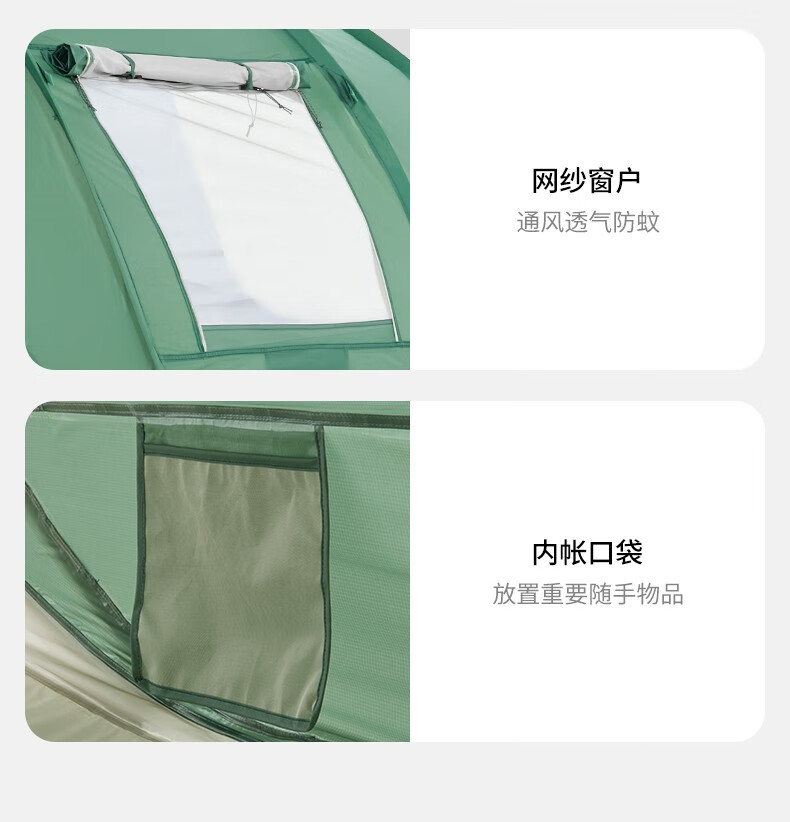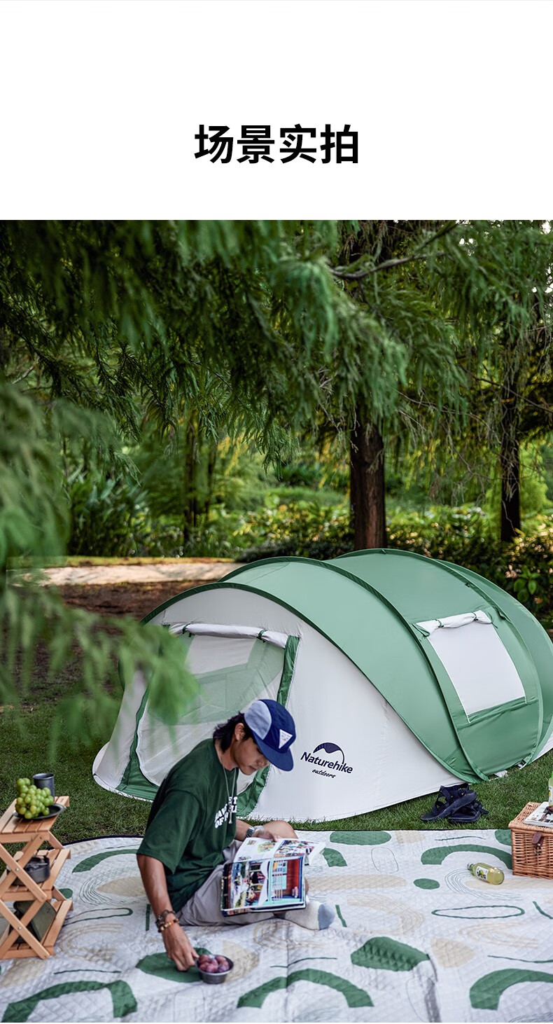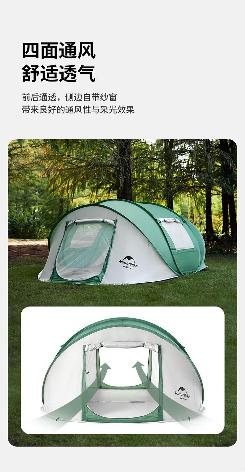 挪客手抛帐篷太适合户外小白!青绿色清新好看,3-4人容量够,一抛自动成型超省事。露营实测防风防雨都靠谱,面料也厚实,收起来体积不大好携带,全家露营必备! 容纳人数:一家4口完全没有。