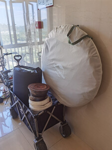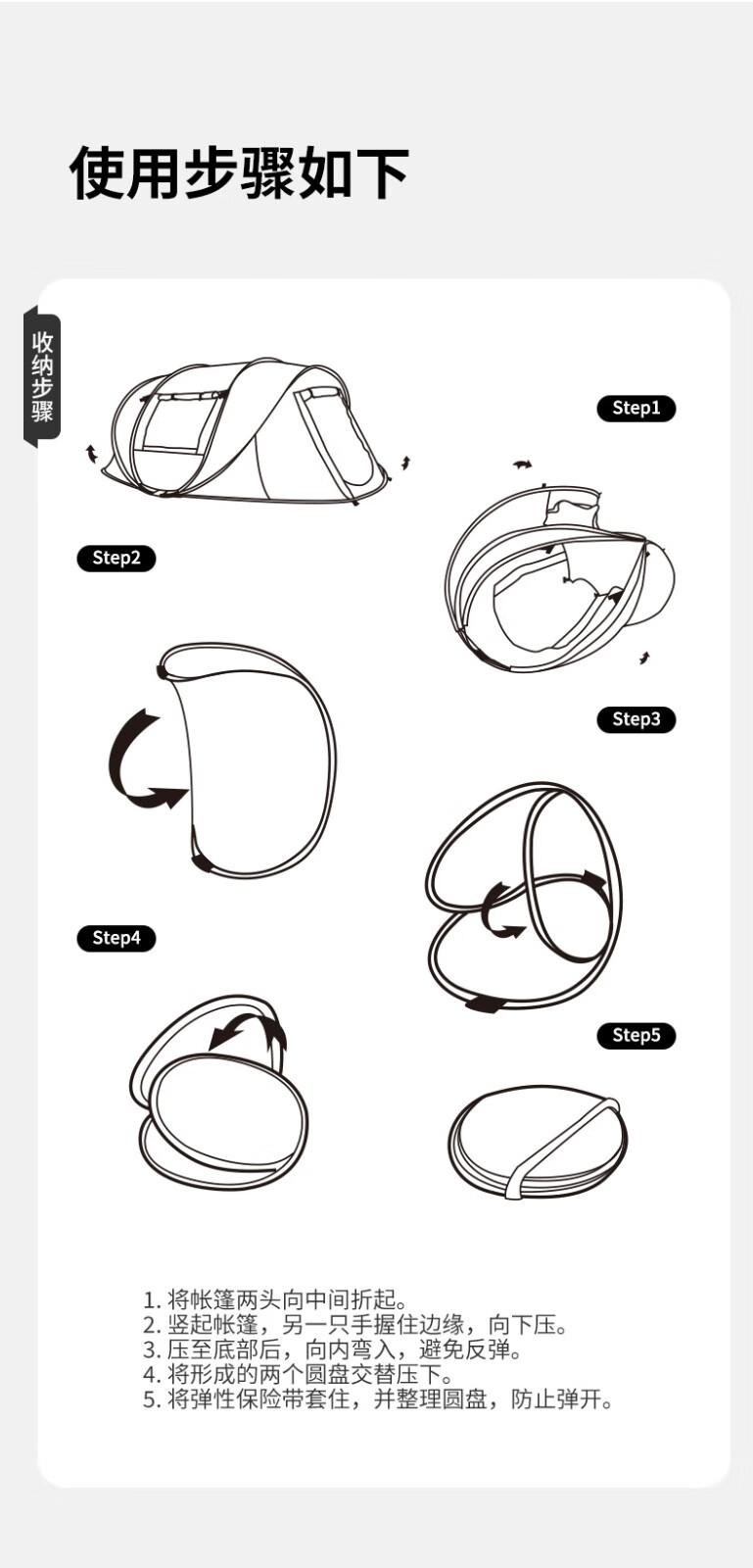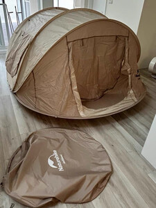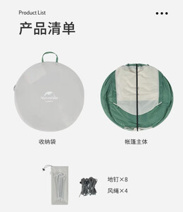帐篷特别大,打开很容易,可以容纳好几个人一起在里面,收纳还算容易,就是收纳起来也挺大的,配件齐全地钉风绳都有,挺结实的。
