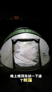 收到帐篷打开来,着实把我惊到了,想不到真的有广告上的尺寸那么大,感觉非常大。帐篷非常好打开,质量看上去也好,而且这个价格这么便宜,这个商家太诚信了。 上一个买的探险者,真的是又贵又差服务还不好,探险者商品的实际长与宽比其商品介绍分别要少差不多50厘米,标220厘米,1.78的个子在里面根本睡不伸,下雨的时候还漏雨,有太阳的时候,其所谓的双层黑胶,里面又比外面还热一二十度!!