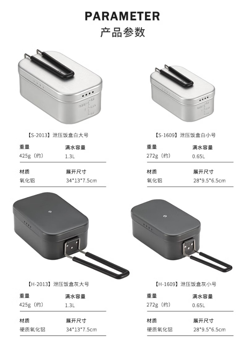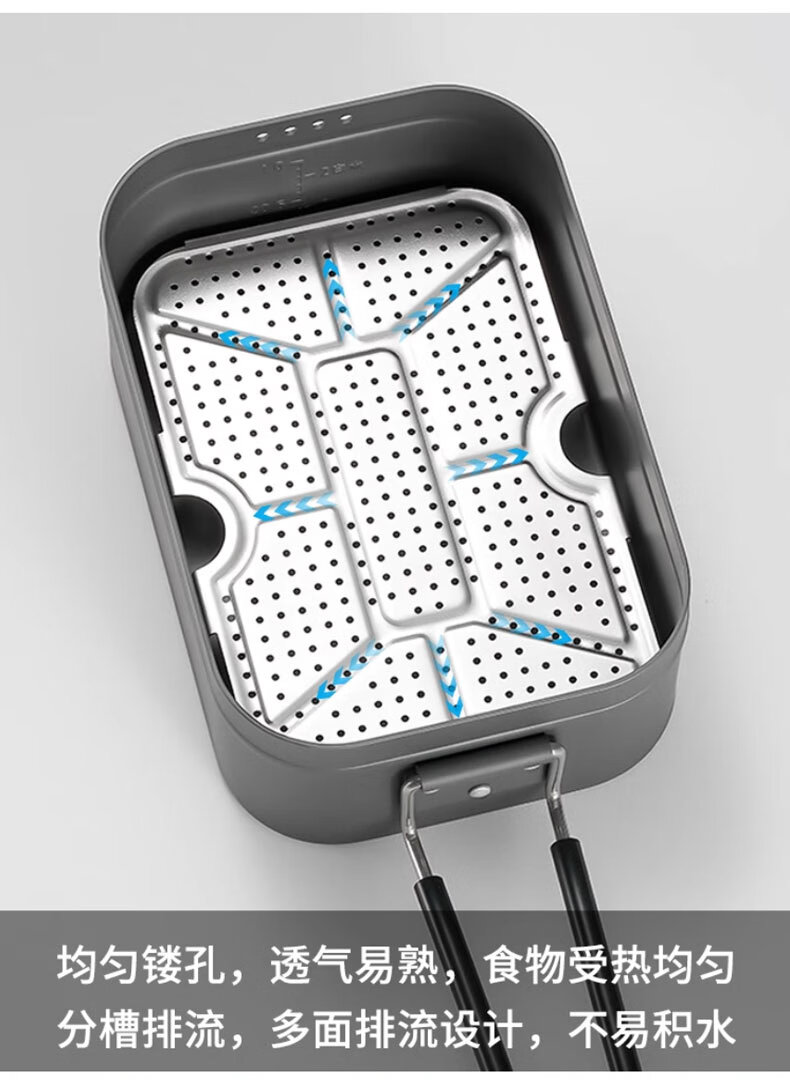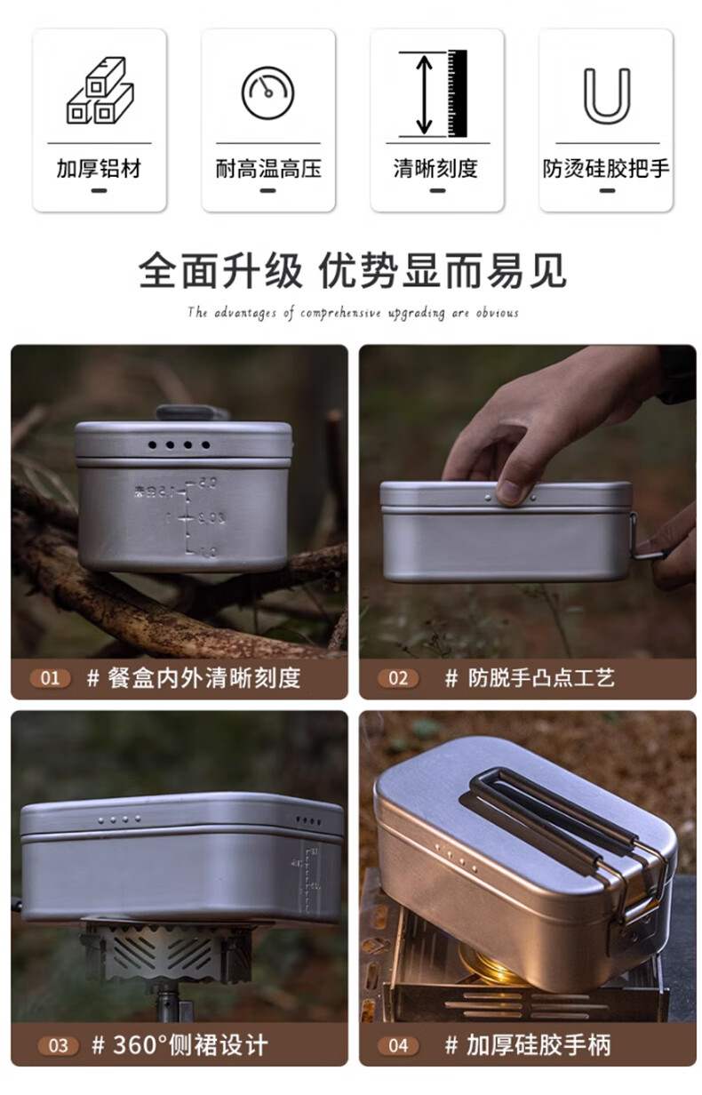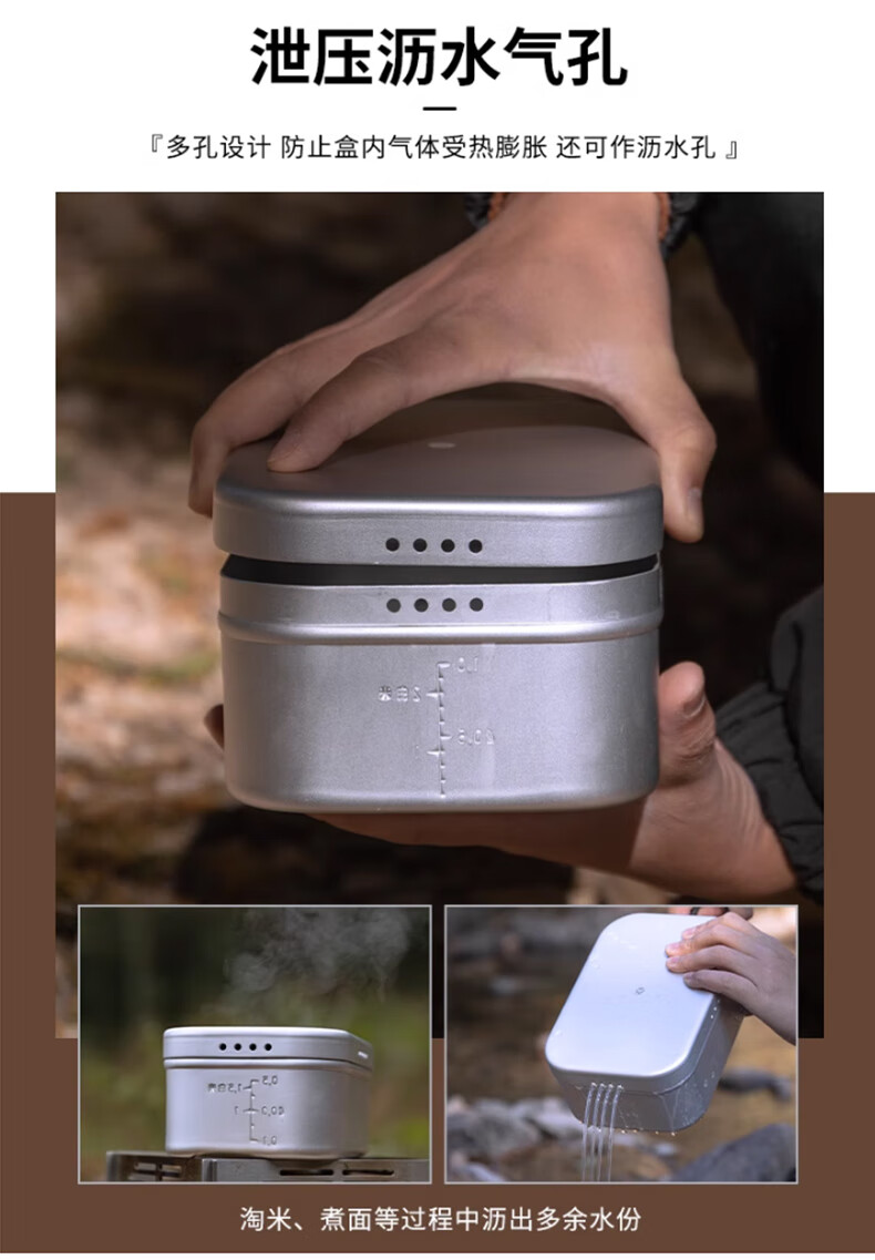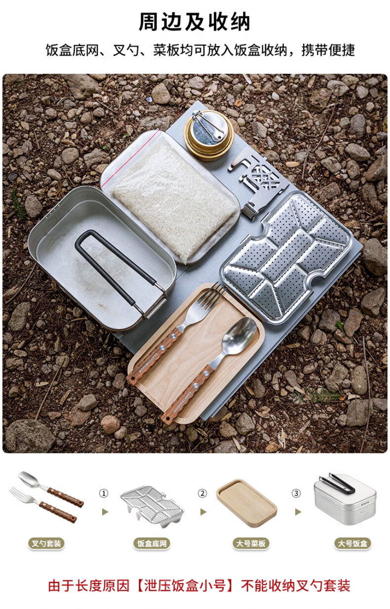 适用场景:户外家用都适合用, 产品做工:产品做工很扎实,不愧是国产大品牌,饭盒很厚,蒸屉更加厚实,真材实料,拿到手里很有质感。 重量大小:重量我觉得正好,大小适合柯曼大号饭盒使用,配套使用,很不错的。另外发货也很快。