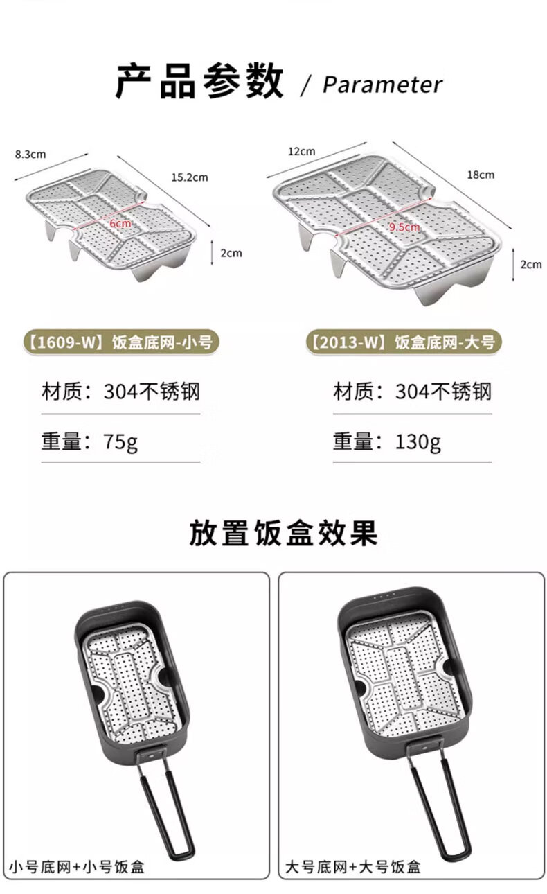 CAMPINGMOON柯曼2013-W饭盒底网304不锈钢蒸架户外露营早餐蒸煮套装 S-2013大号银色+炸网+大底网+包