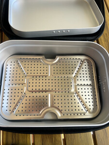 柯曼饭盒,做工十分细致,用料厚实远超过我到想象,手感厚重扎实,细节部分处理的很光滑,盒盖严丝合缝,结合紧密而不生涩。沥水板和小切菜板也和饭盒主体很贴合。