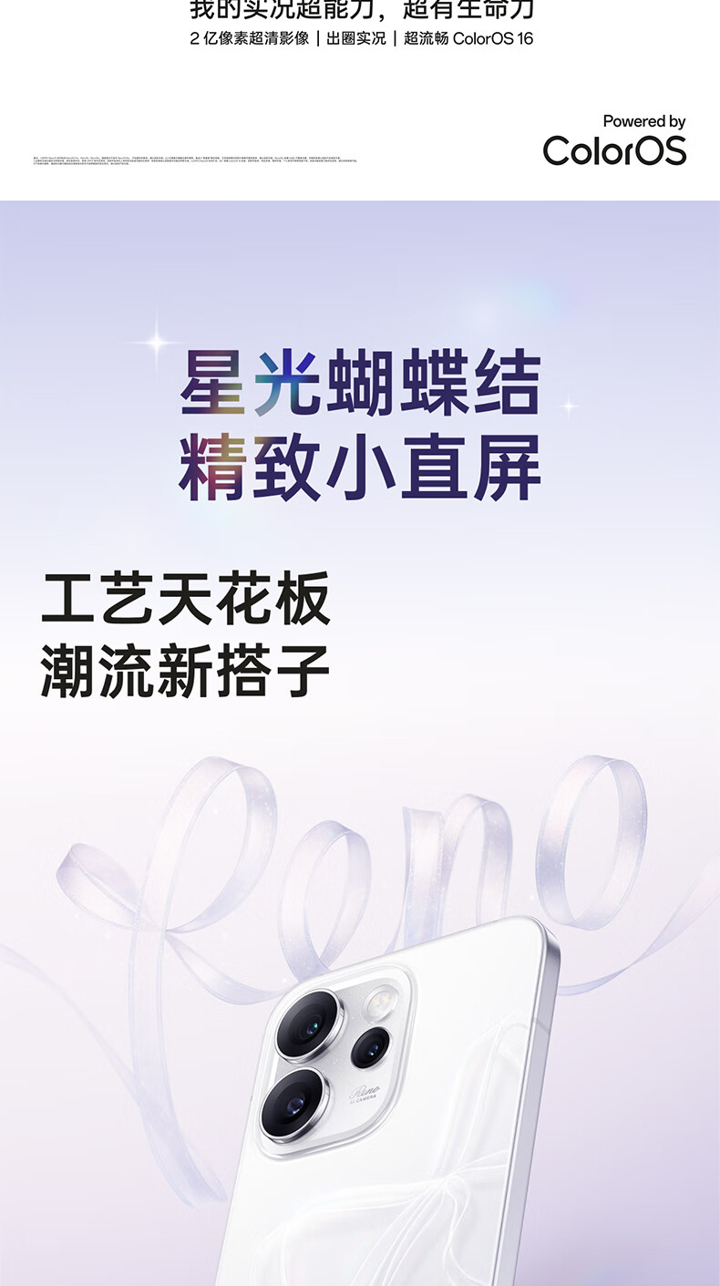 OPPO【补贴立减15%】OPPO Reno15手机新品宋雨琦星光蝴蝶结2亿像素超清影像IP69满级防水实况神机新款 星光蝴蝶结 16GB+512GB 日常套装【OPPO蓝牙耳机+80W闪充套装】
