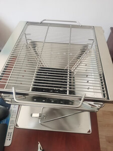 质量很好,很厚实,很好用 用料材质:用料很厚实,都是粗铁丝 适用人数:两个人用起来很好 重量大小:很厚实很重很不错 便携性能:叠起来小小一片,很好携带 热源类型:烧炭火很方便