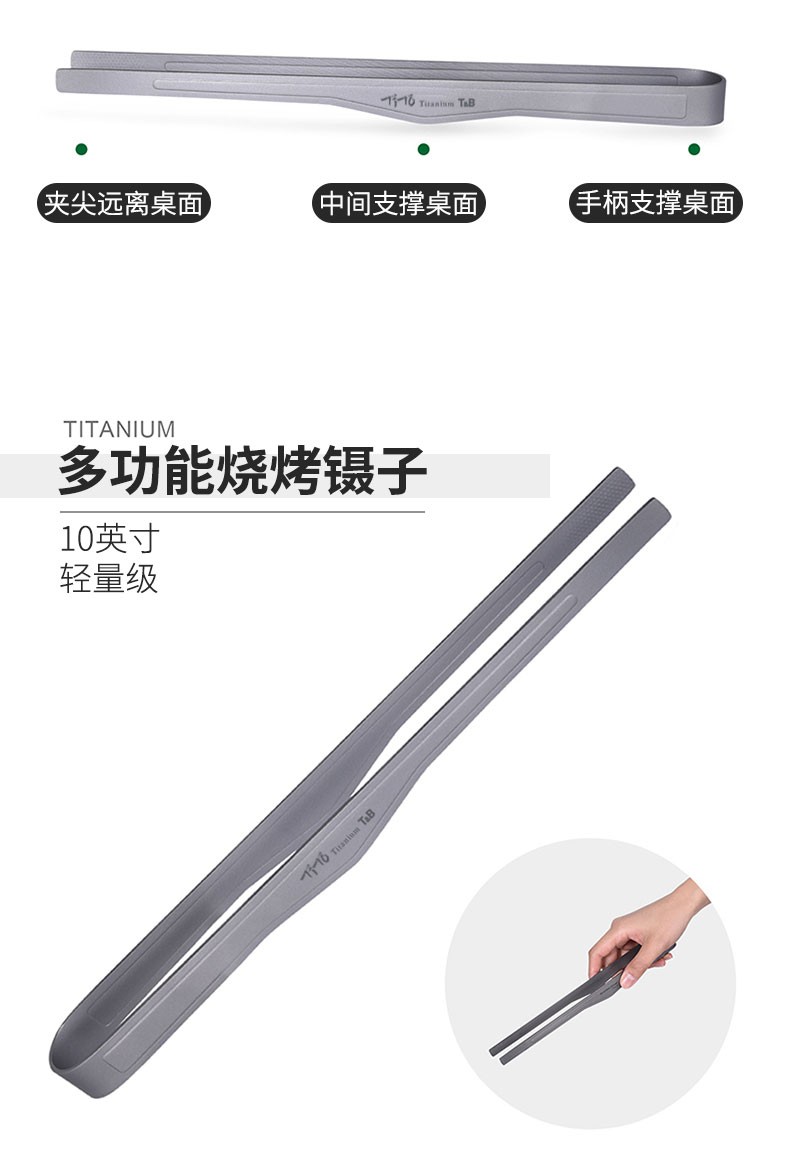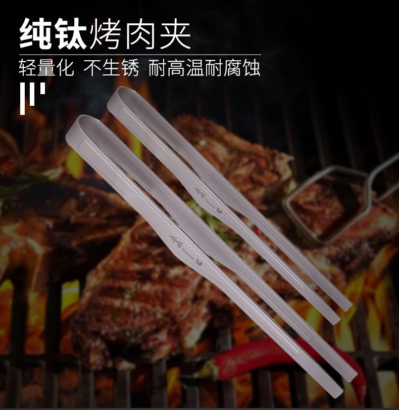 钛途(TITO TITANIUM) 纯钛烧烤夹烤肉夹子牛排夹户外野营旅行装备餐具厨具厨房烹饪 纯钛烤肉夹255mm