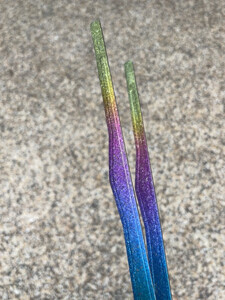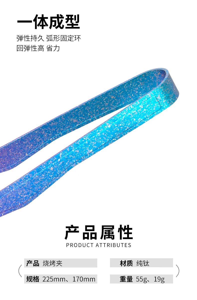 非常绚丽的一款烤肉夹,光彩夺目,非常耀眼,让人爱不释手!质地轻盈,大小合适,尾端质地重,前段质地轻柔,是我喜欢的款型。如果性价比再高点,烤肉夹尖头再宽那么一点就更完美了!