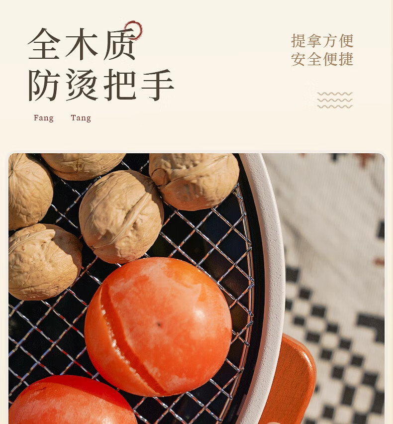 炭火燃烧充分,散热快,铁艺造型美观,冬日户外温暖又舒适。
