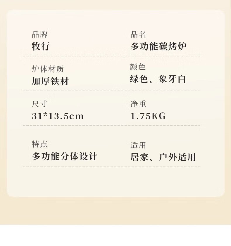产品功能:烧烤炉很便宜,挺厚实耐用的质量不错不错,而且安装好很稳固,这个面积可以烤两行烤串,量大实惠,觉得烤条鱼都能行,设计的也很科学