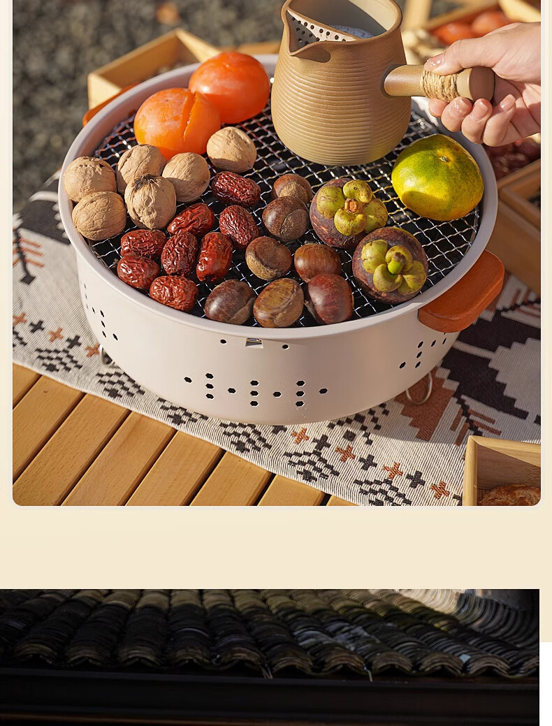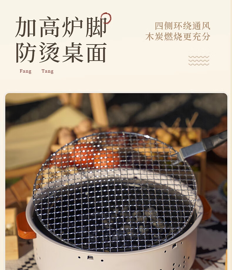 耐博佳烤火炉户外庭院烤火盆取暖炉室内烧烤炉家用围炉煮茶套装 围炉煮茶【3斤无烟炭/加密烤网】