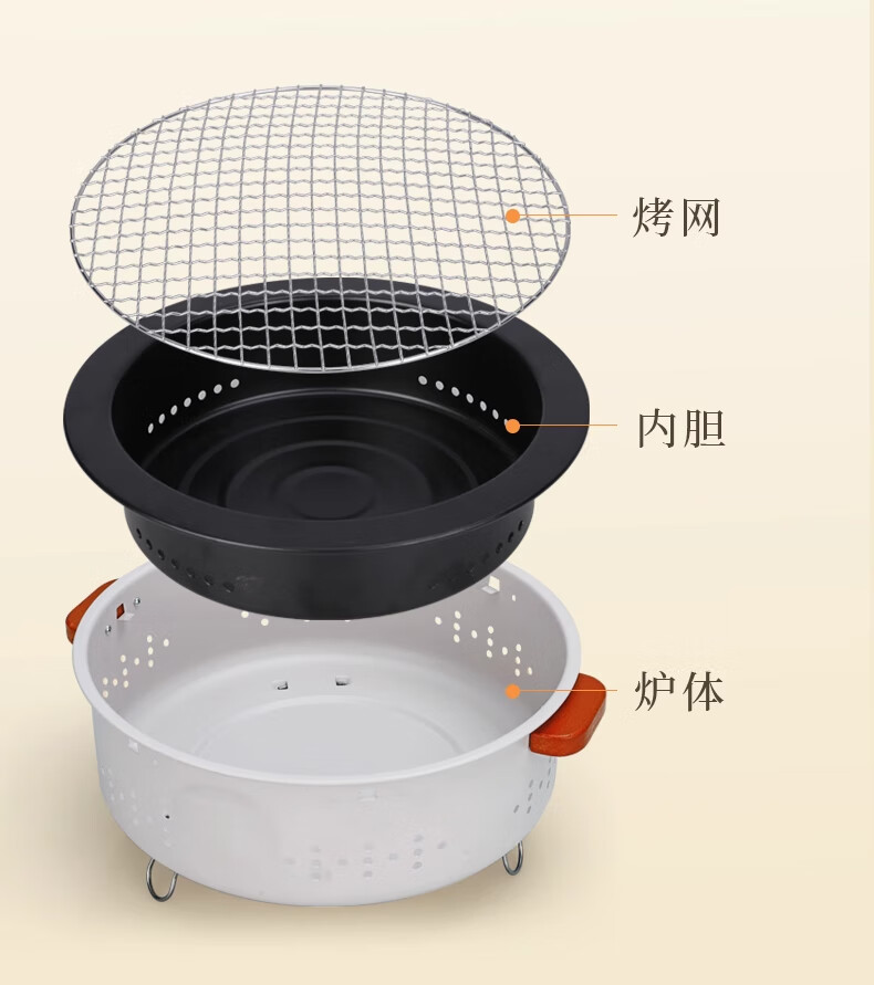 潮思汇不锈钢烧烤炉家用木炭烧烤架户外3-5人便携烧烤工具可折叠烤肉炉 一体便携式加厚烧烤炉 单炉(普通款)无网