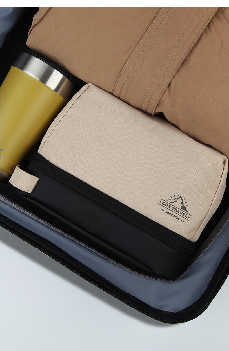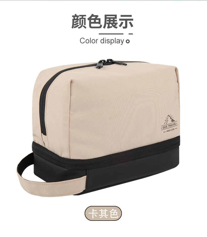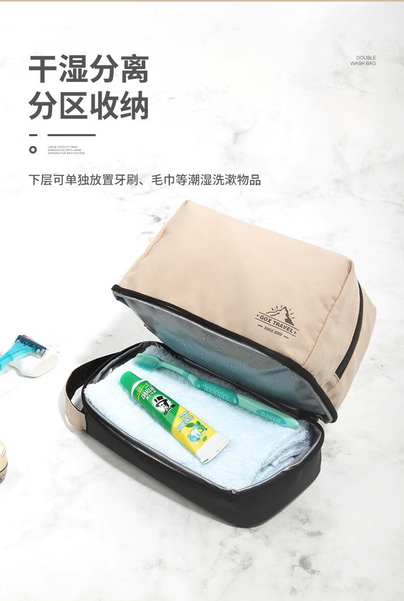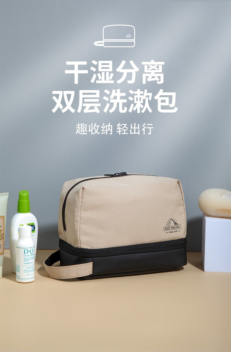 GOX洗漱包男出差旅行收纳包便携洗漱收纳袋防水干湿分离大容量洗漱包 卡其色