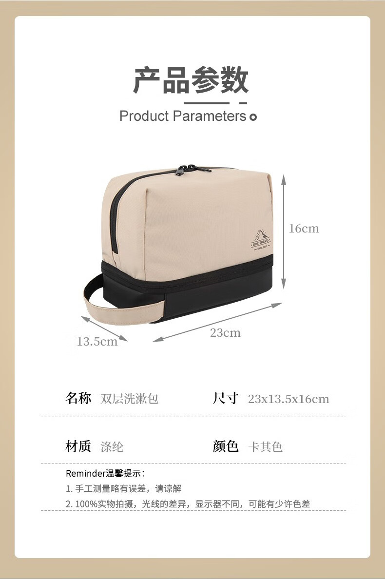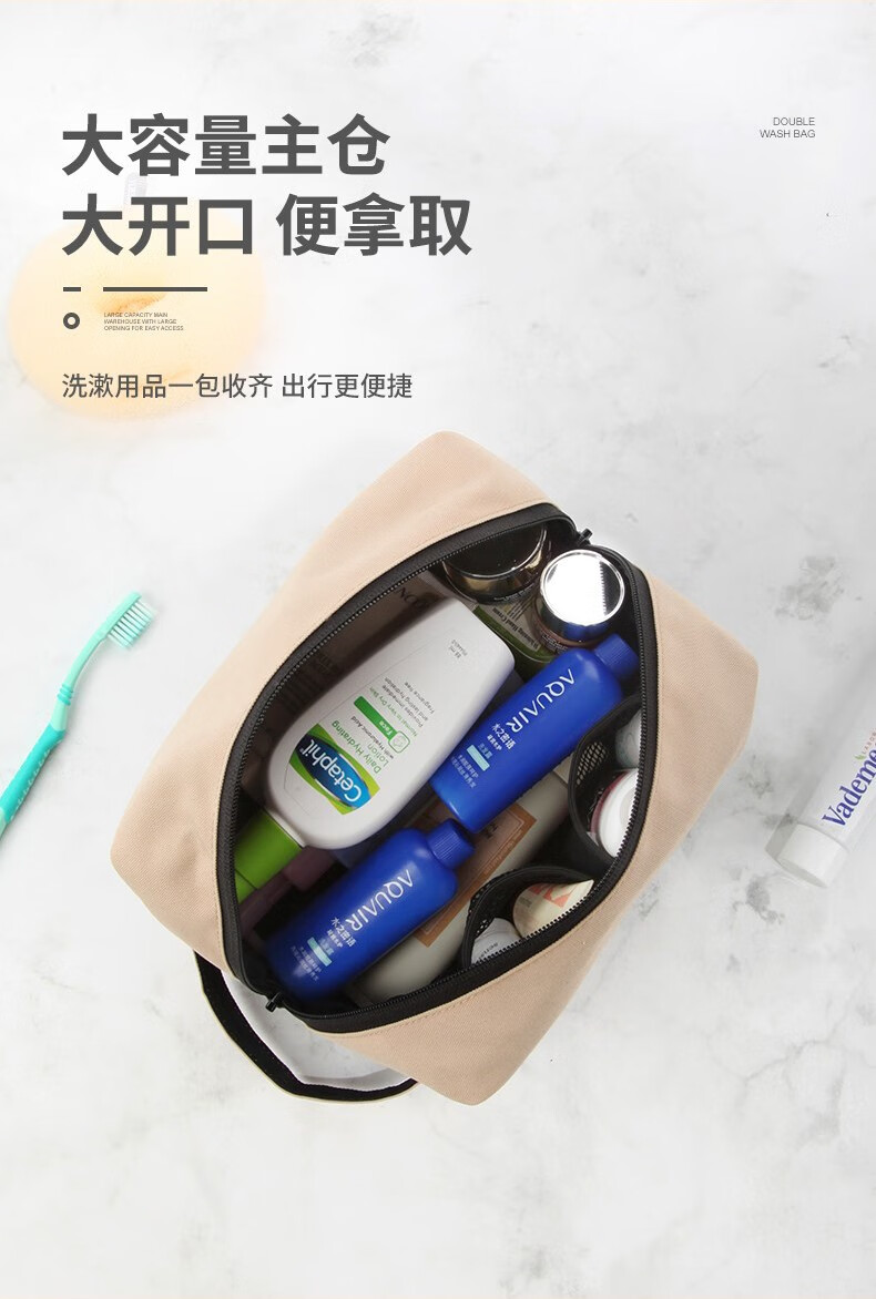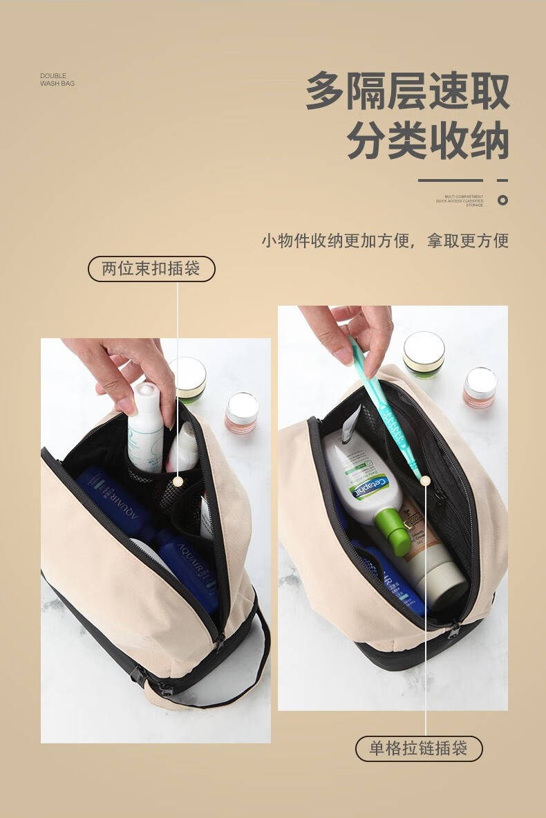 GOX洗漱包男出差旅行收纳包便携洗漱收纳袋防水干湿分离大容量洗漱包 卡其色