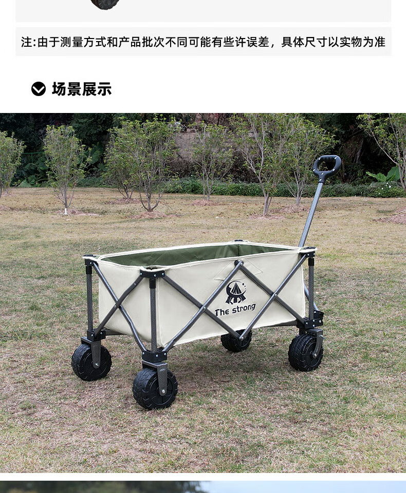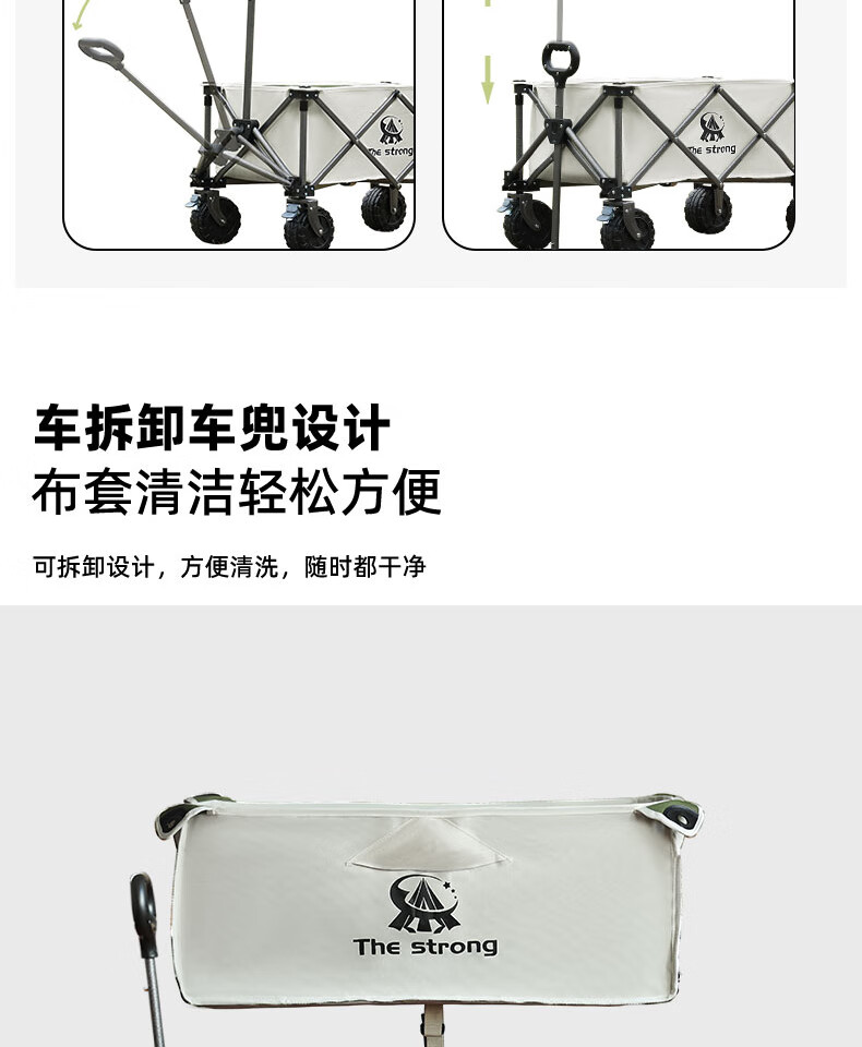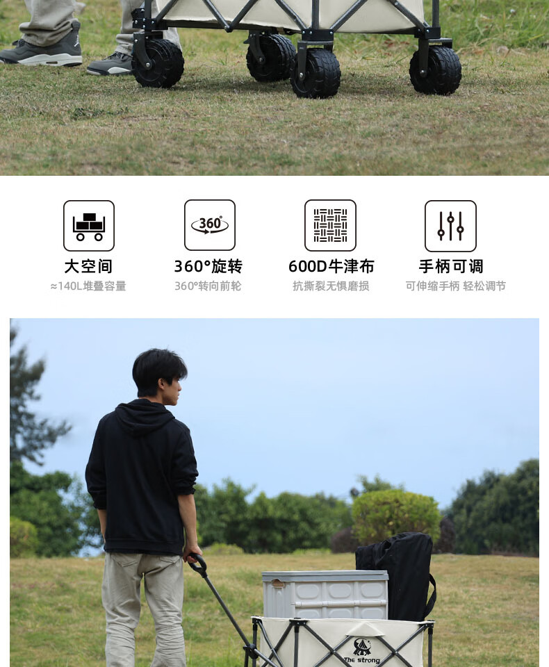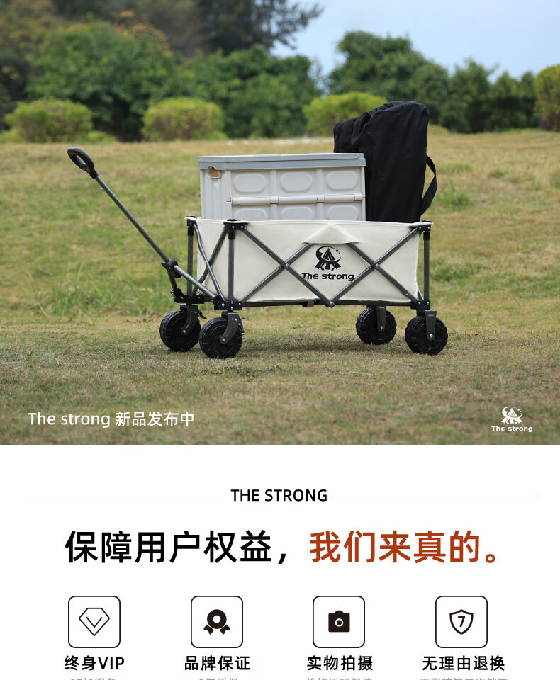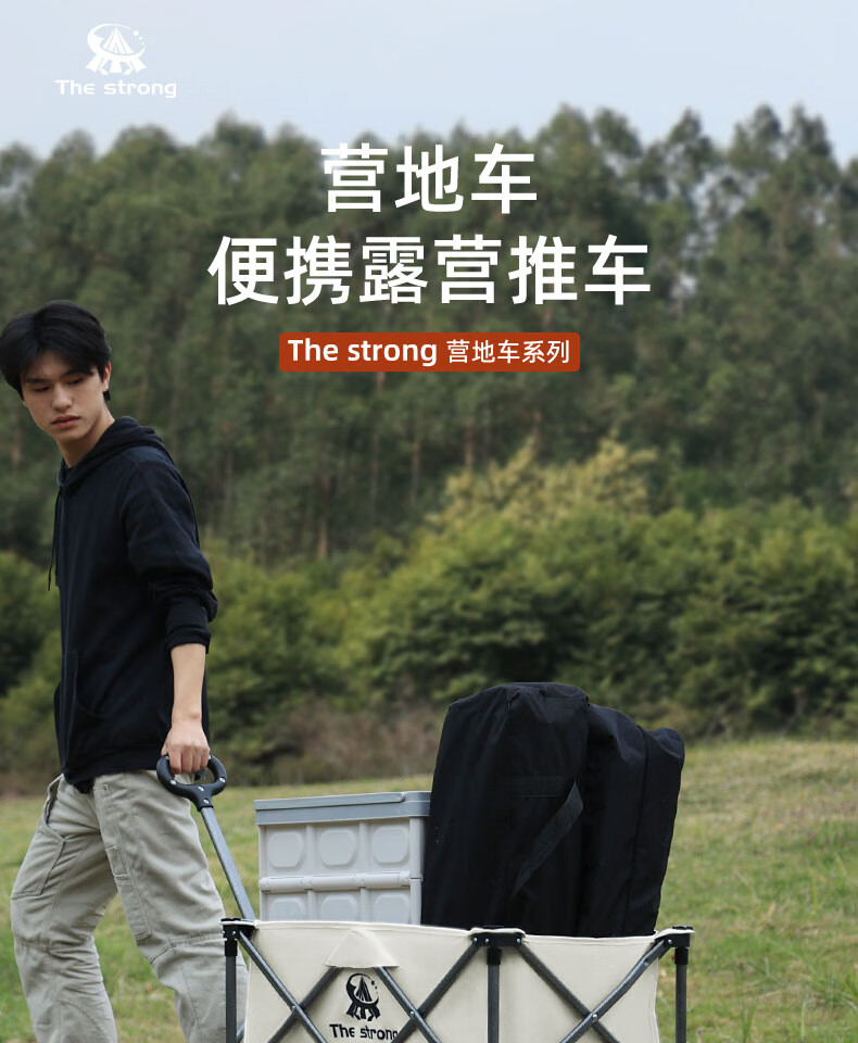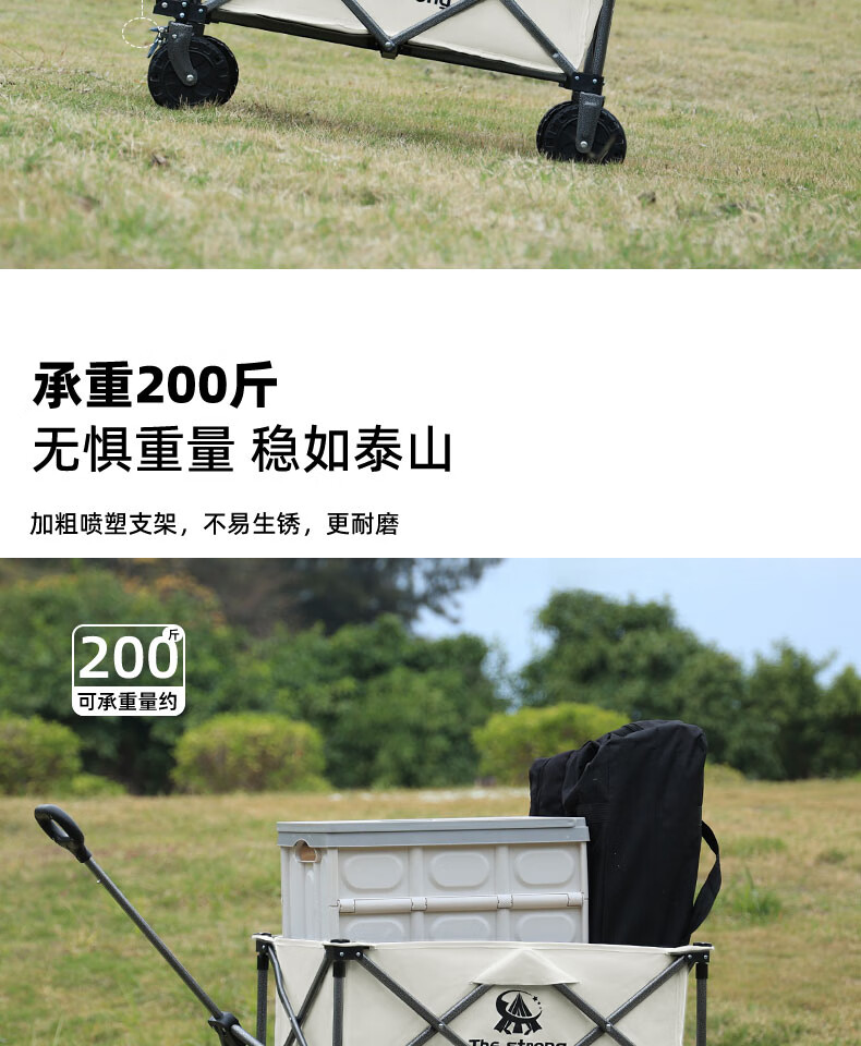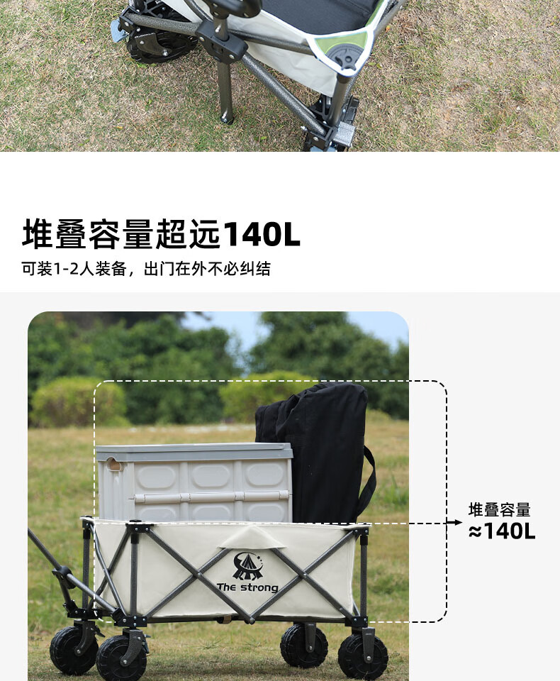 THE STRONG户外露营车营地折叠小推车聚拢型拖车全钢车架 米白 120L 有刹车 堆叠容量 越野版