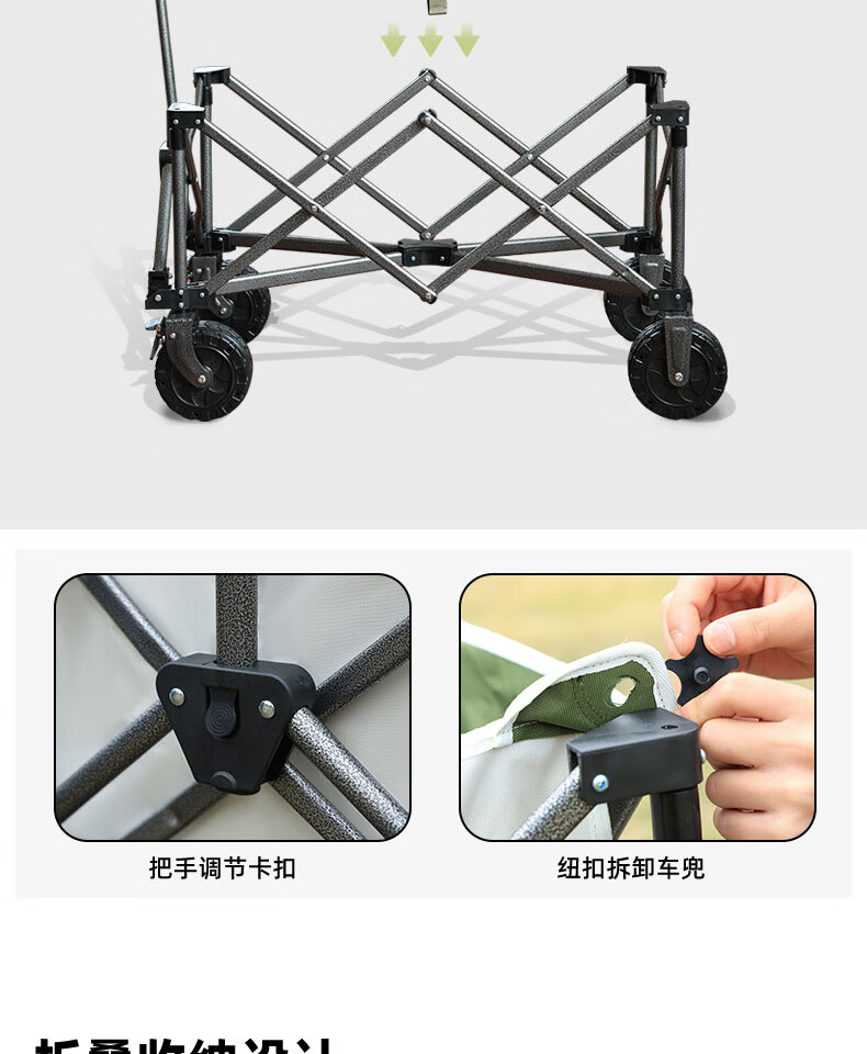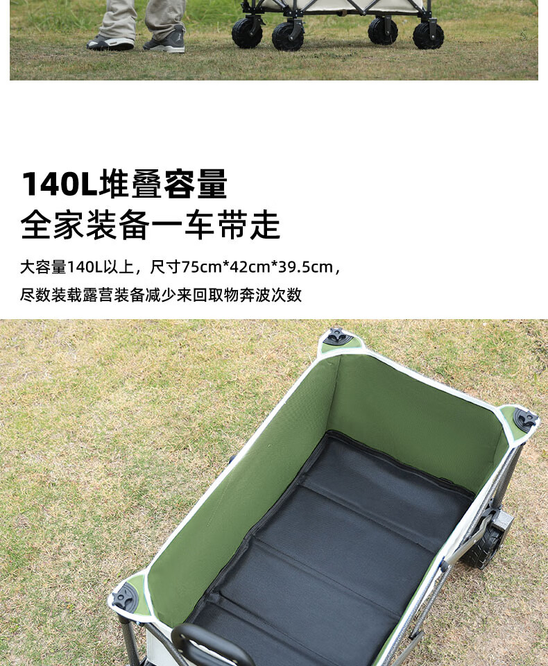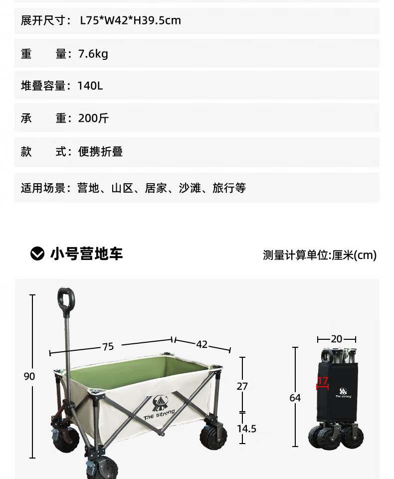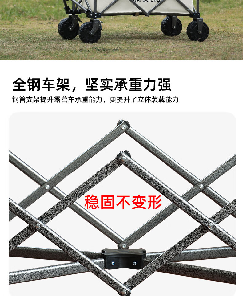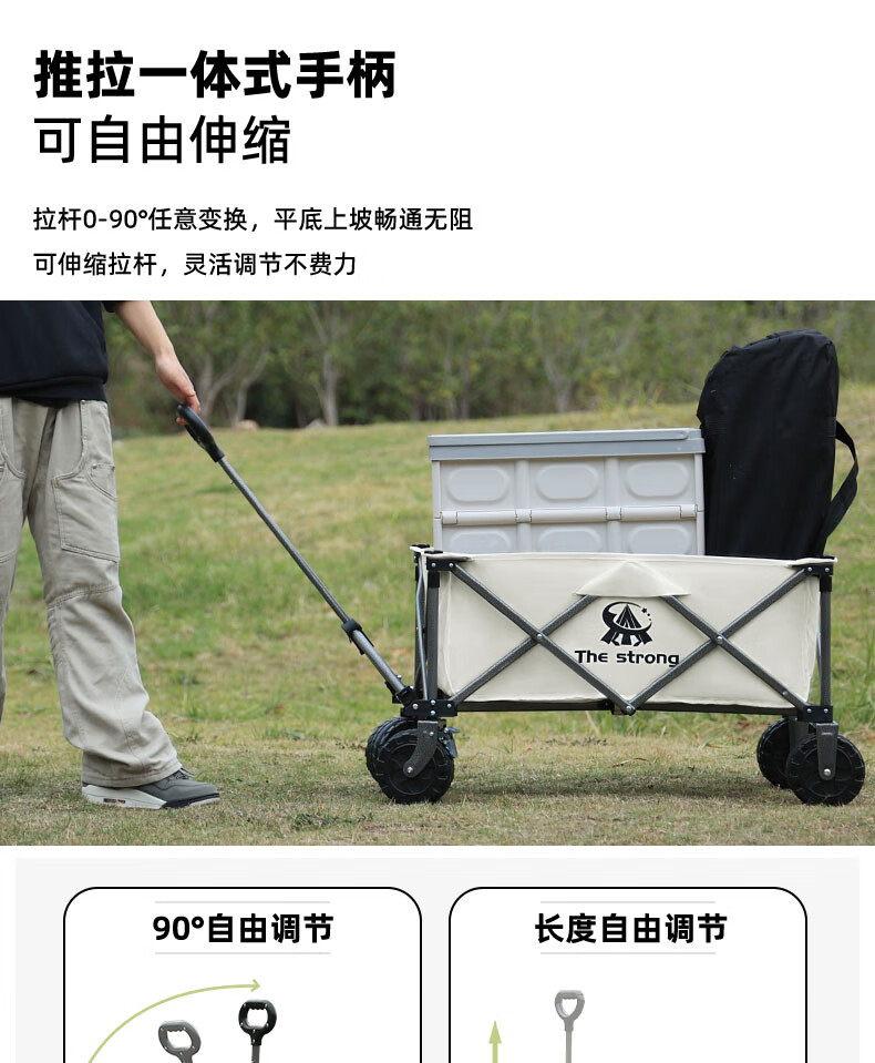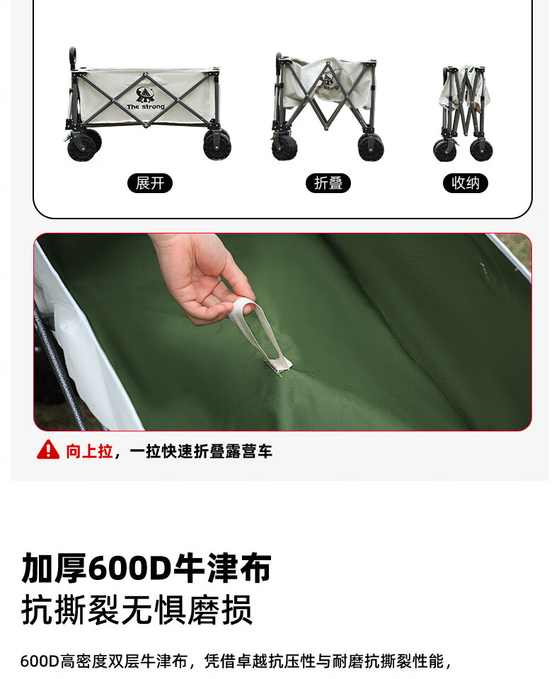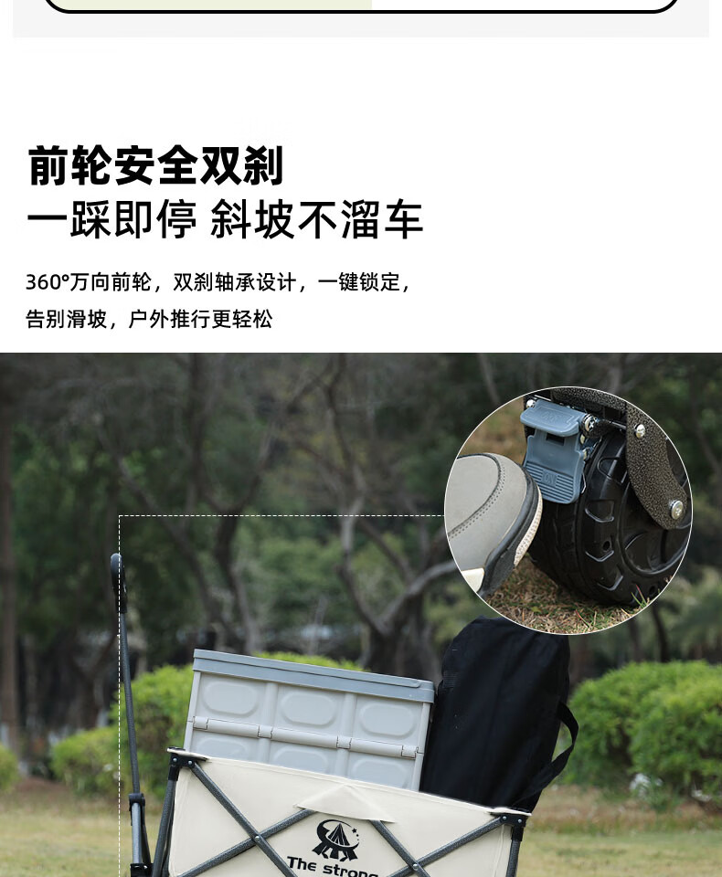 THE STRONG户外露营车营地折叠小推车聚拢型拖车全钢车架 米白 120L 有刹车 堆叠容量 越野版