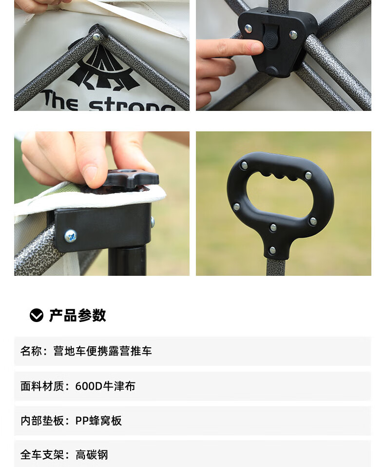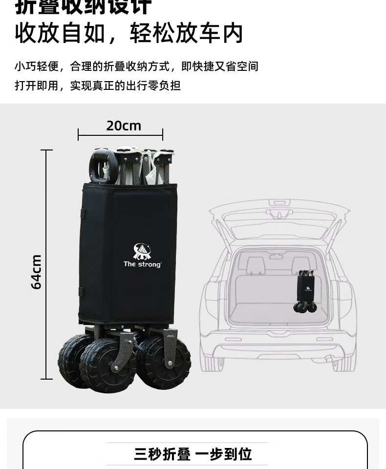 THE STRONG户外露营车营地折叠推车聚拢型拖车越野全钢车架 中号 190L 有刹车 堆叠容量 全钢车架