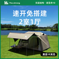 THE STRONG诺亚舟10户外露营帐篷自动速开防雨过夜防晒遮阳装备 卡其黑胶(3-4人) 两室一厅