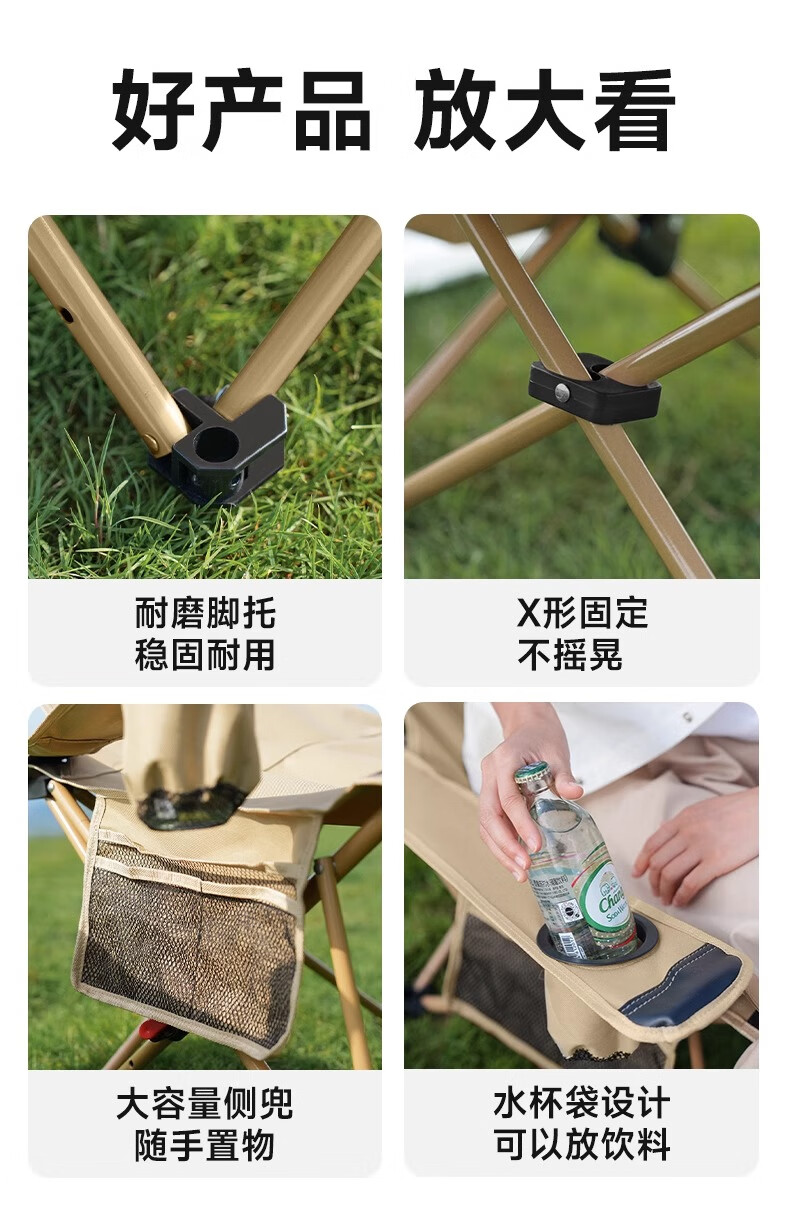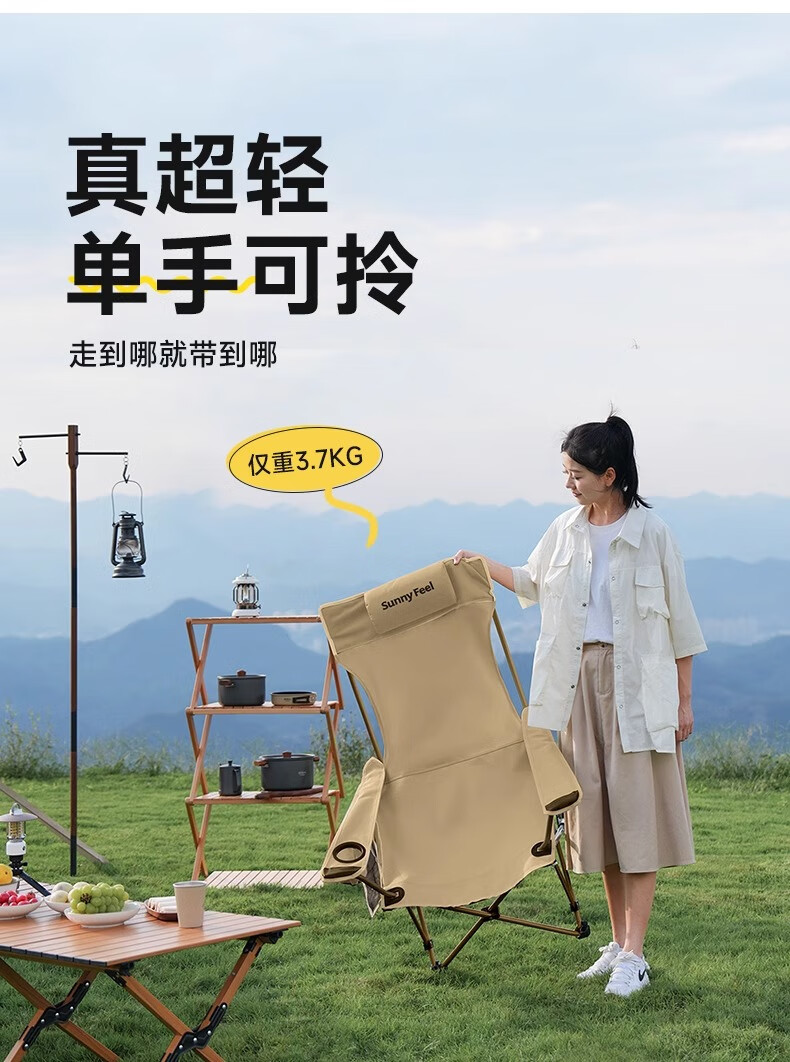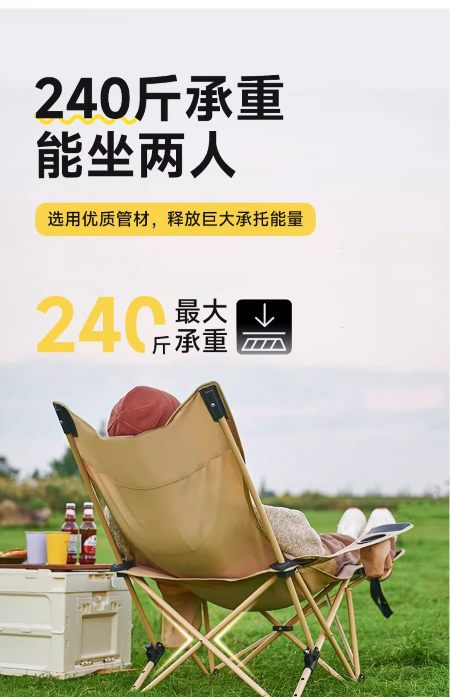 山扉户外,一出必属尚品。轻量化的航空铝合金支架,600D牛津布带网面的坐椅椅面及靠背,承重力非常强。而且坐椅可以360度旋转,非常方便。当然,最主要是轻盈携带方便,收纳起来提积很小。真的是户外露营的好搭档。点赞!五星好评!