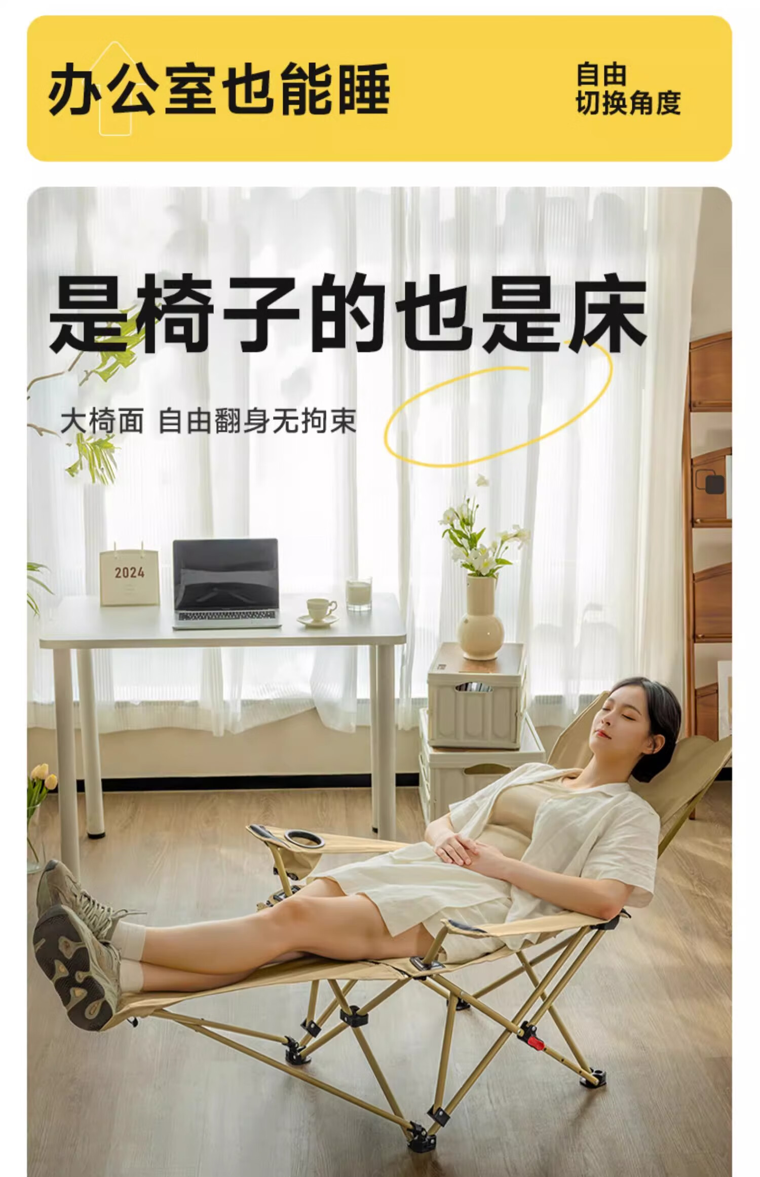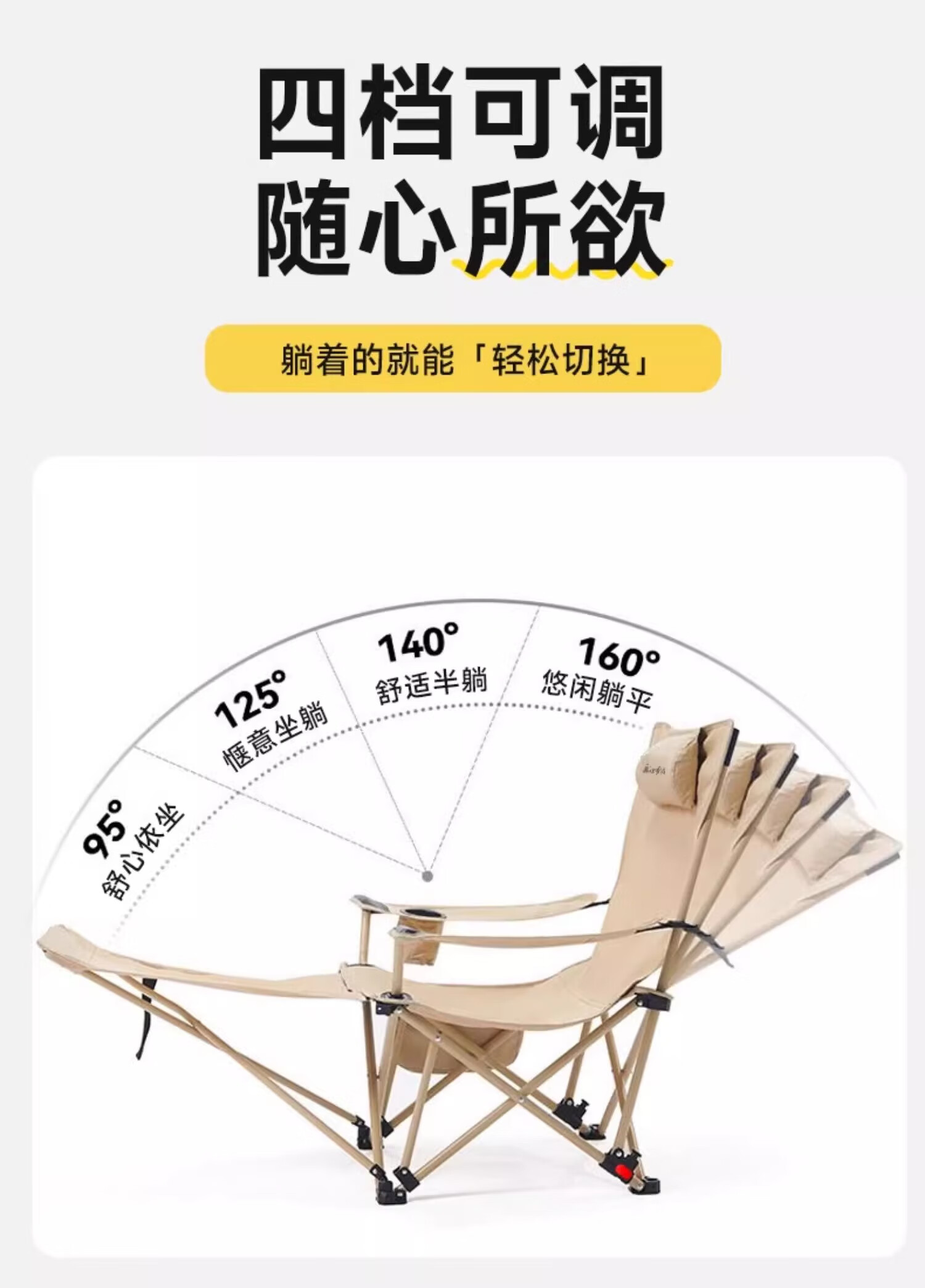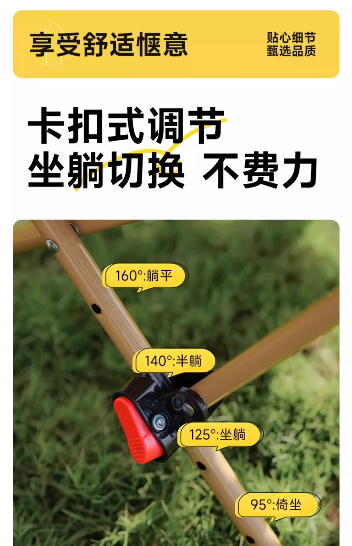 山扉山扉户外折叠躺椅午休露营椅子折叠椅办公室折叠午睡床钓鱼靠背椅 【4挡调节】坐躺两用椅 曜石黑