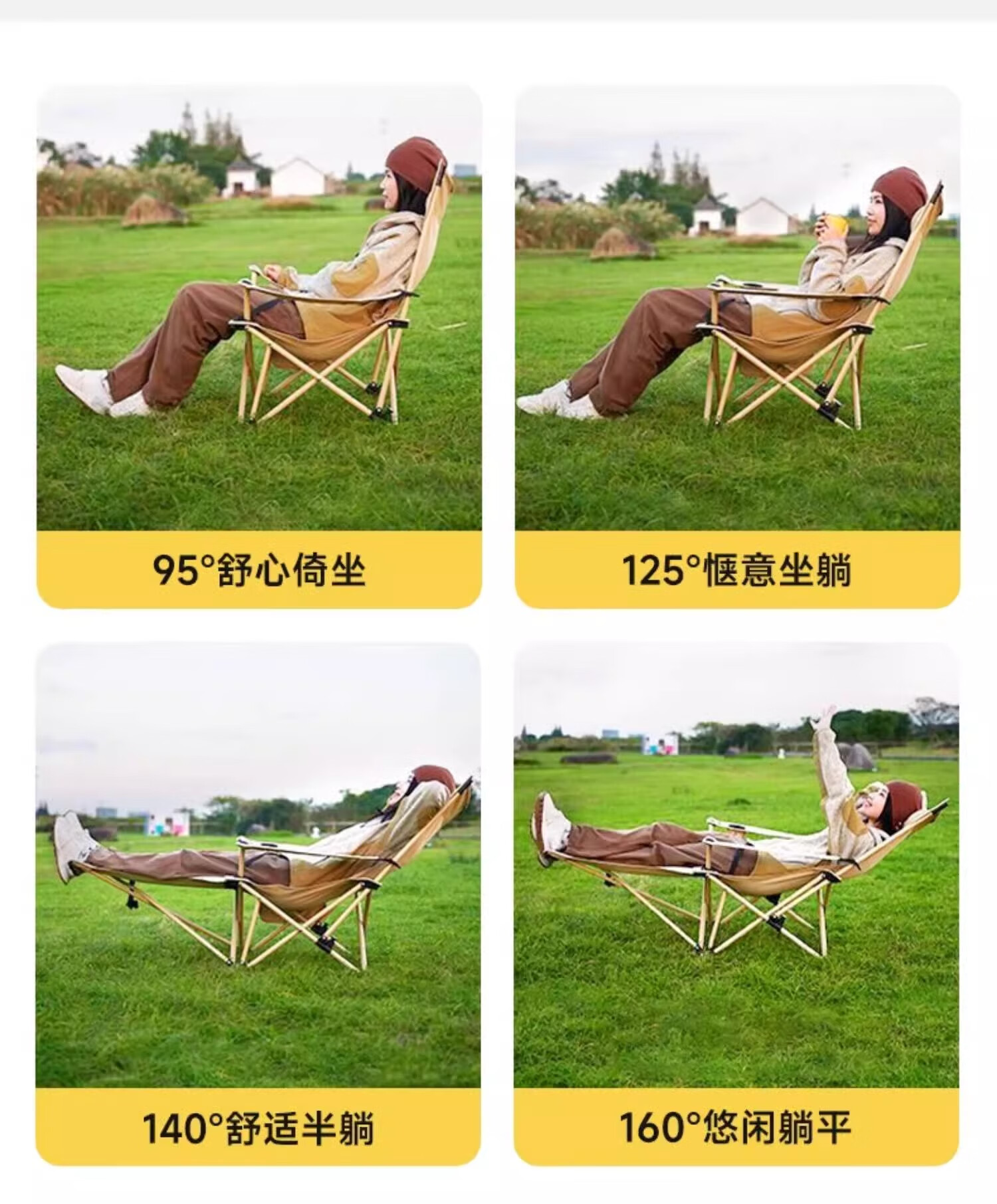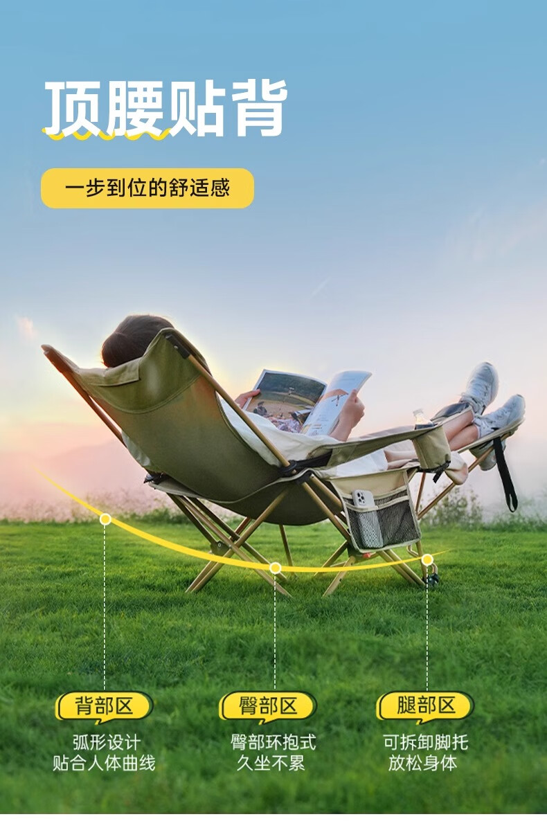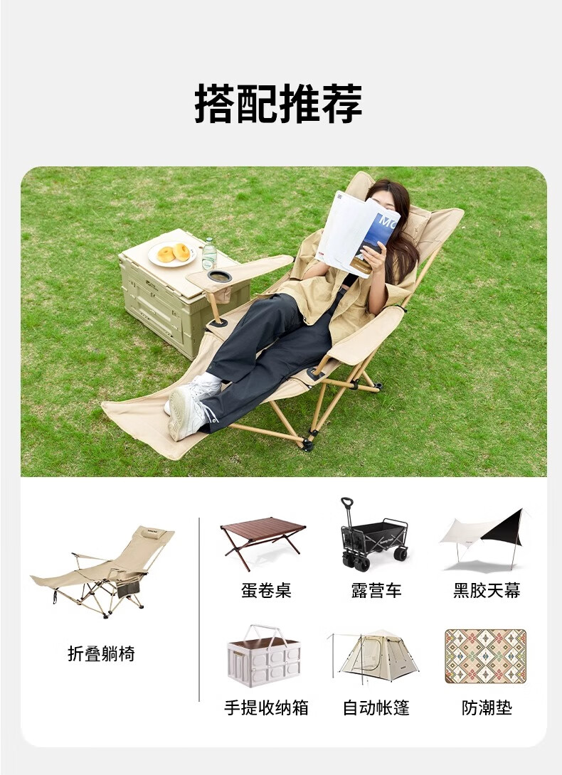 山扉悠享连桌折叠躺椅户外露营聚拢便携式午休椅子午睡躺椅四档可调节 连桌款·卡其色【四档调节+可拆脚托变桌】悠享躺椅