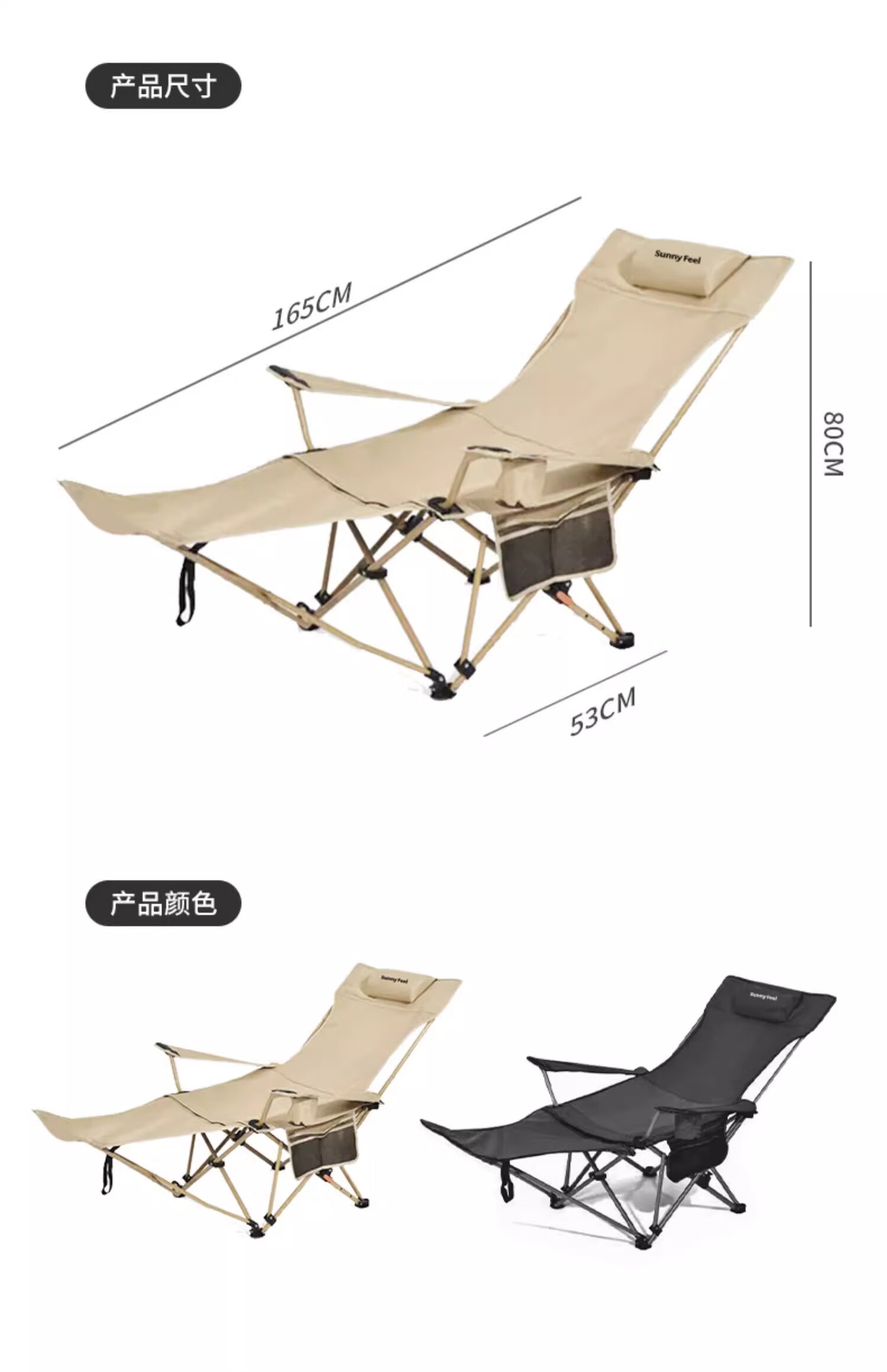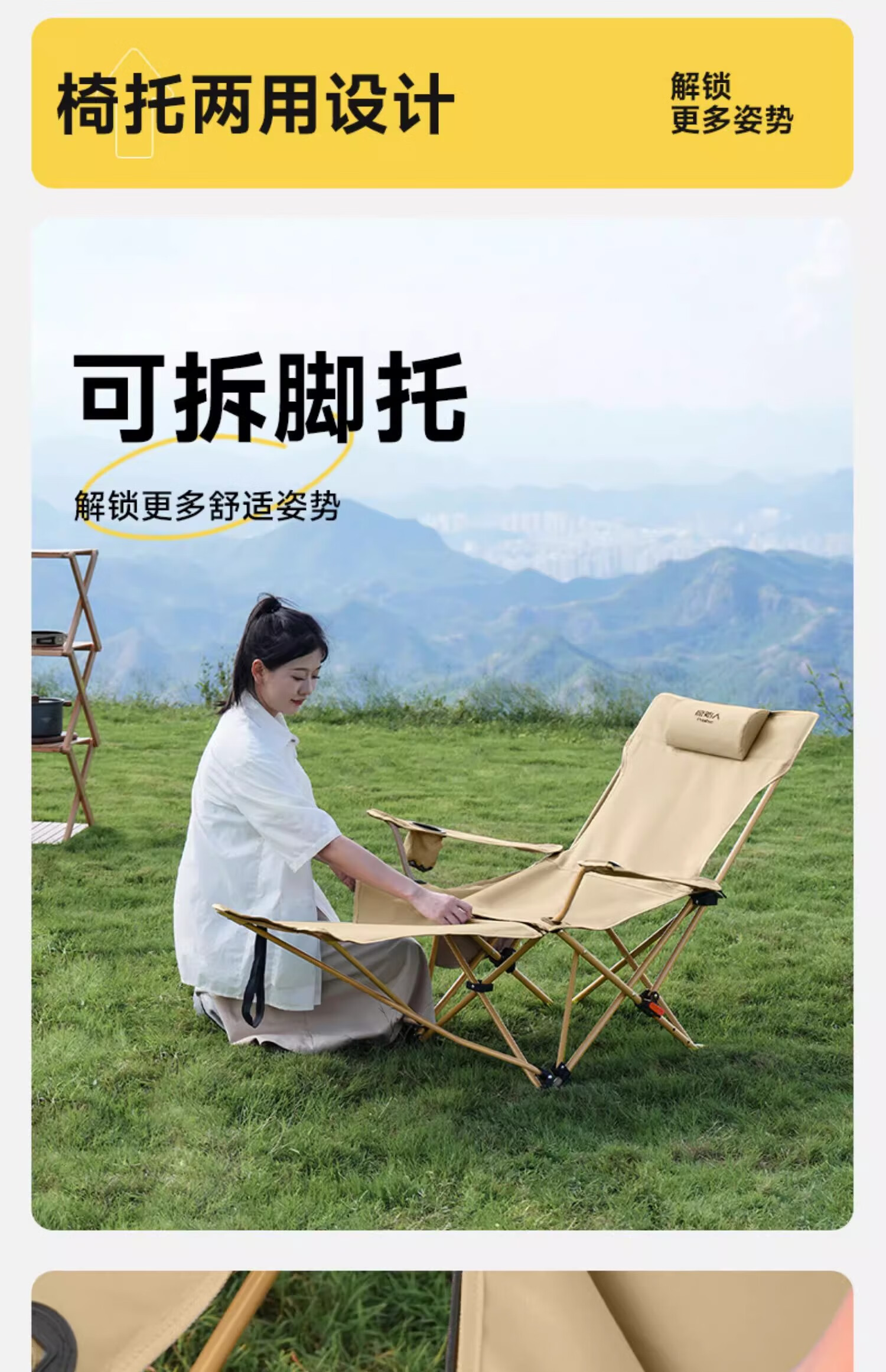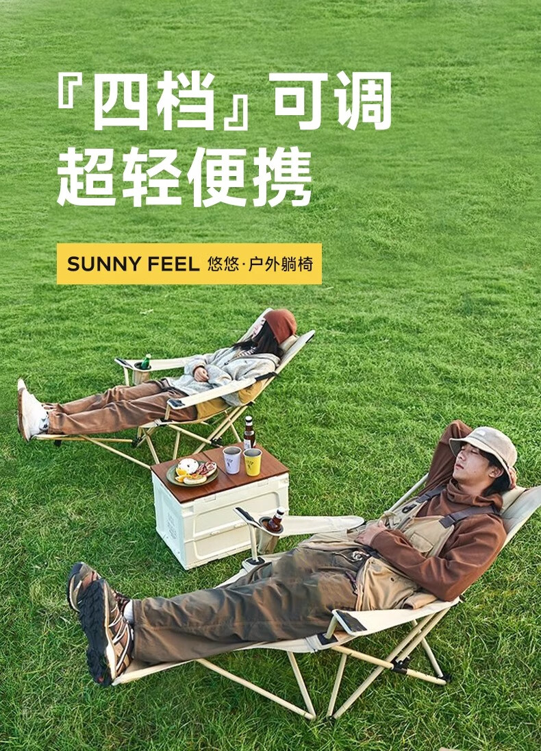 山扉悠享连桌折叠躺椅户外露营聚拢便携式午休椅子午睡躺椅四档可调节 连桌款·卡其色【四档调节+可拆脚托变桌】悠享躺椅