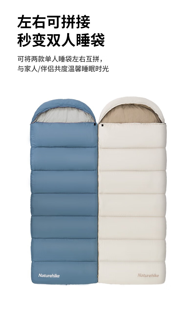 NatureHike挪客日暄信封带帽增温棉睡袋户外露营成人加厚可拼接 晚波蓝/HU250/常规款/右