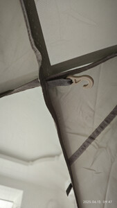 支脚处带有卡扣与外账连接 外袋儿也有卡扣 收纳方面也被品牌方考虑到了 细节满满 帐篷内侧有小内兜 做工一流 外账图片颜色发白 但实际是灰 很高级的灰色