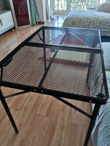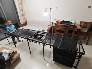 物流很快,包装完好。目前轻度露营,没有烹饪设备,准备买一次性烤炉烤串,用这个小桌放烤炉非常合适。质量不错,高度还能再增高。