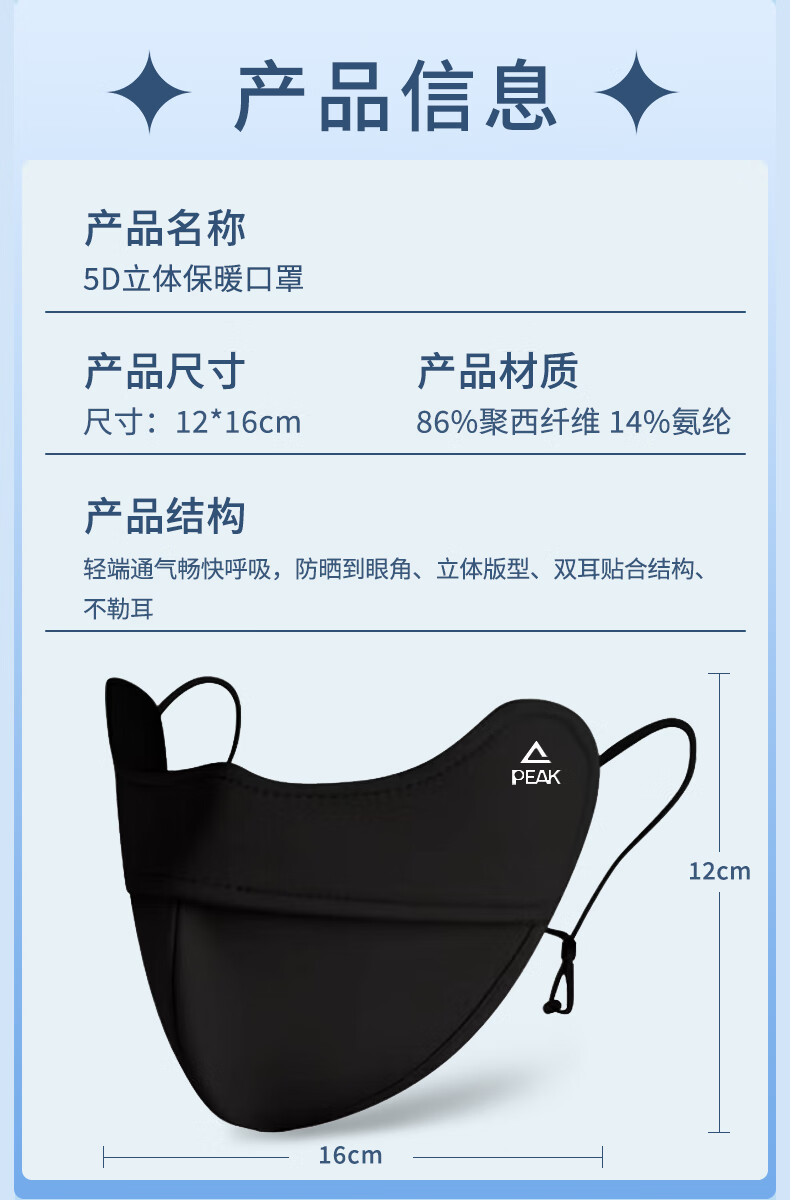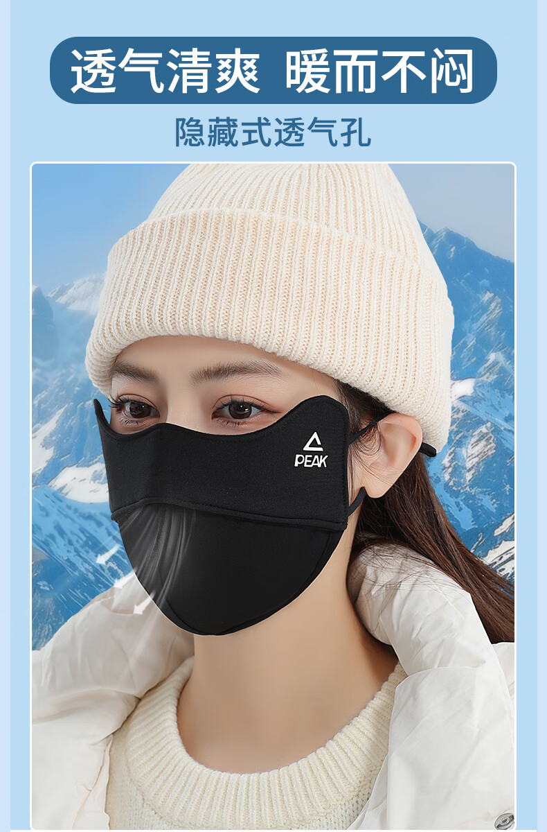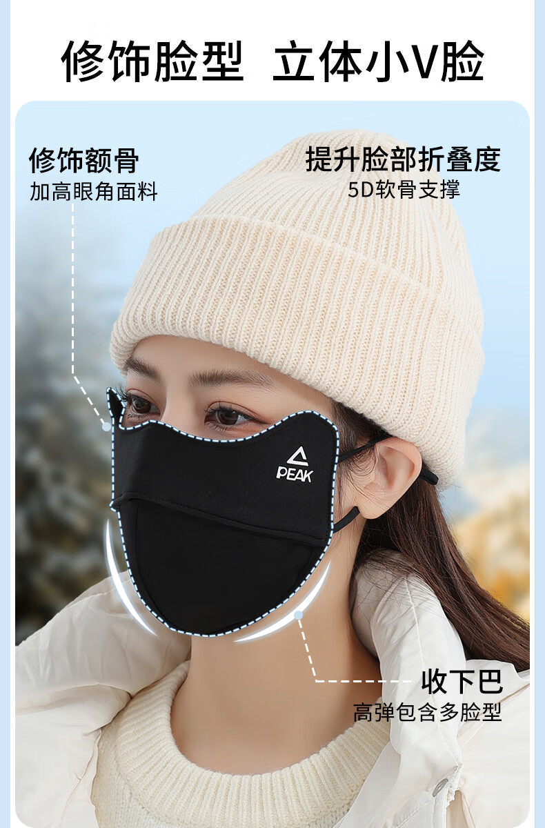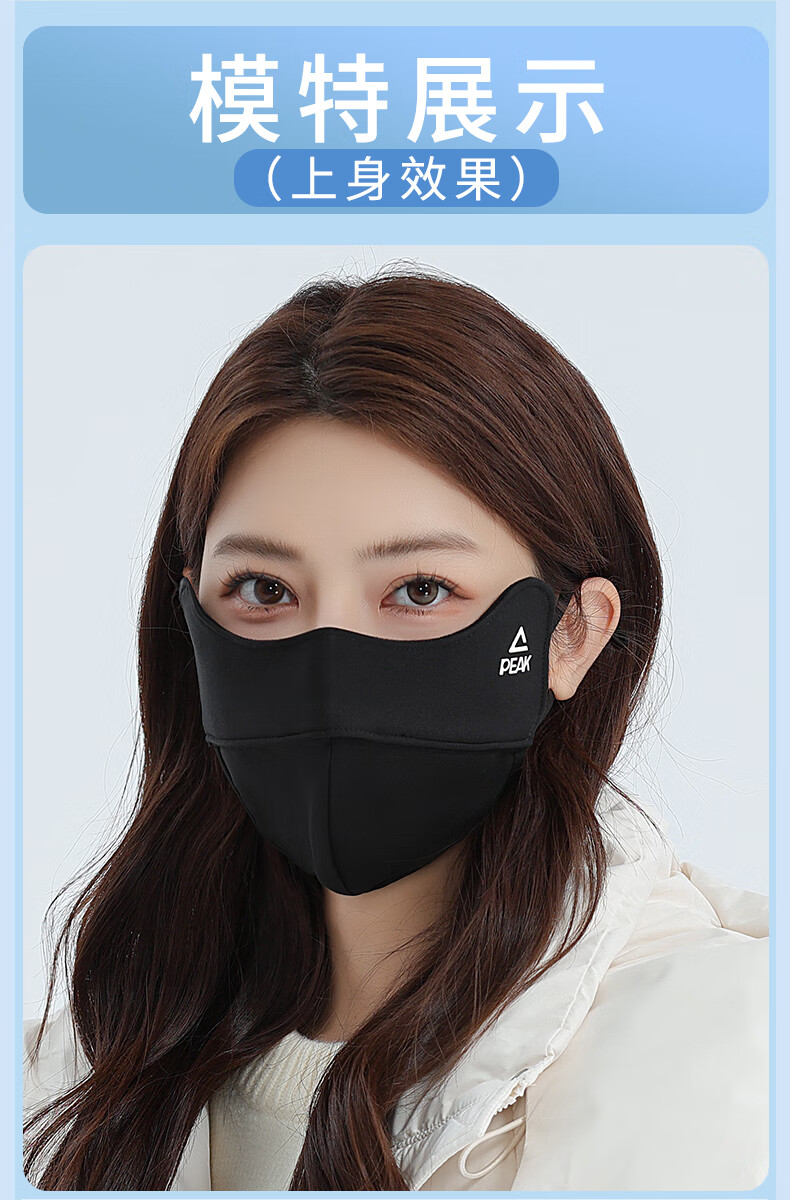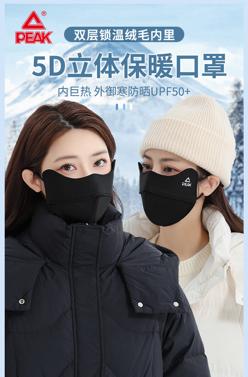 匹克保暖防风口罩冬季加绒加厚高颜值骑行滑雪口罩男女通用 黑色+灰色【两只】 不加绒【颜色随机】