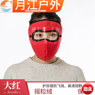 艾格辰护脸面罩冬季脸寒户外骑行护目尘护耳风加绒男女保暖口罩 红色