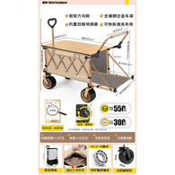 疆屿户外露营车便携折叠营地推车野营拉车摆摊快递拖车儿童可躺拉车 卡其聚拢MAX推拉一体+碳钢桌面