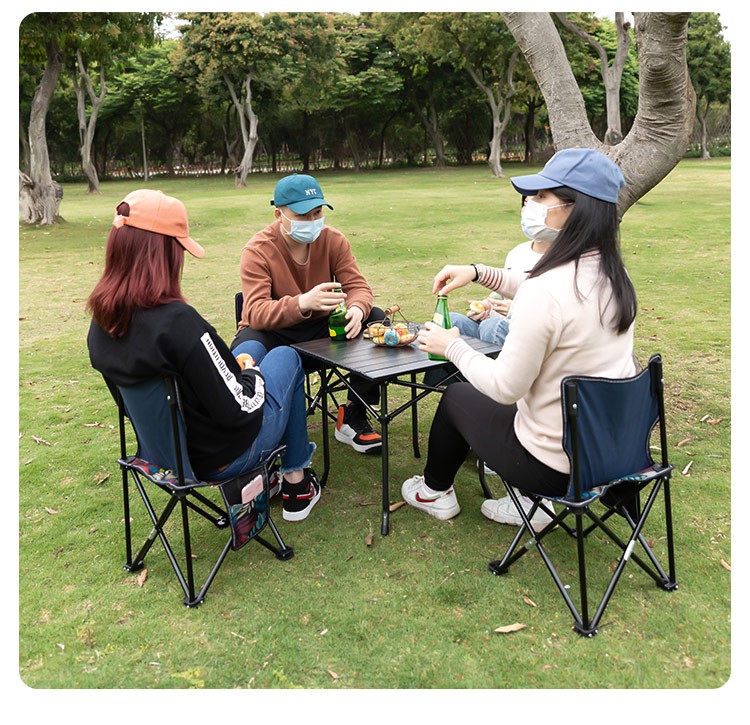 郝麦户外折叠桌椅套装野餐桌椅烧烤自驾游露营室外阳台便携蛋卷桌子 桌子*中号+中号椅子*炫红树叶*4