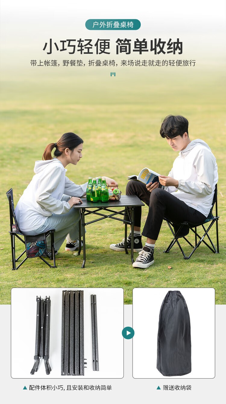 帝帆户外折叠桌椅套装露营装备全套折叠桌椅蛋卷桌野餐旅行便携式 50米方桌+2把特大号白椅+包
