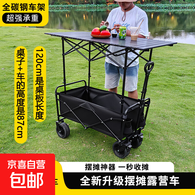 露营装备车户外便携推车超大野外车野餐车拖车升降桌摆摊小推车 越野轮款+120高桌【黑色】